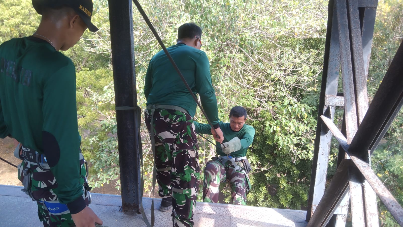 Dispen Kormar Situbondo - Pusat Latihan Pertempuran Marinir (Puslatpurmar) - 5 Baluran mengadakan kegiatan Penyegaran Mountainering dengan materi seat rappelling di Daerah Latihan (Rahlat) Puslatpurmar -5 Baluran. Sumberwaru Banyuputih Situbondo, kamis (30/05/2024).
