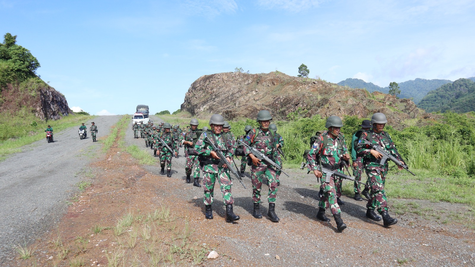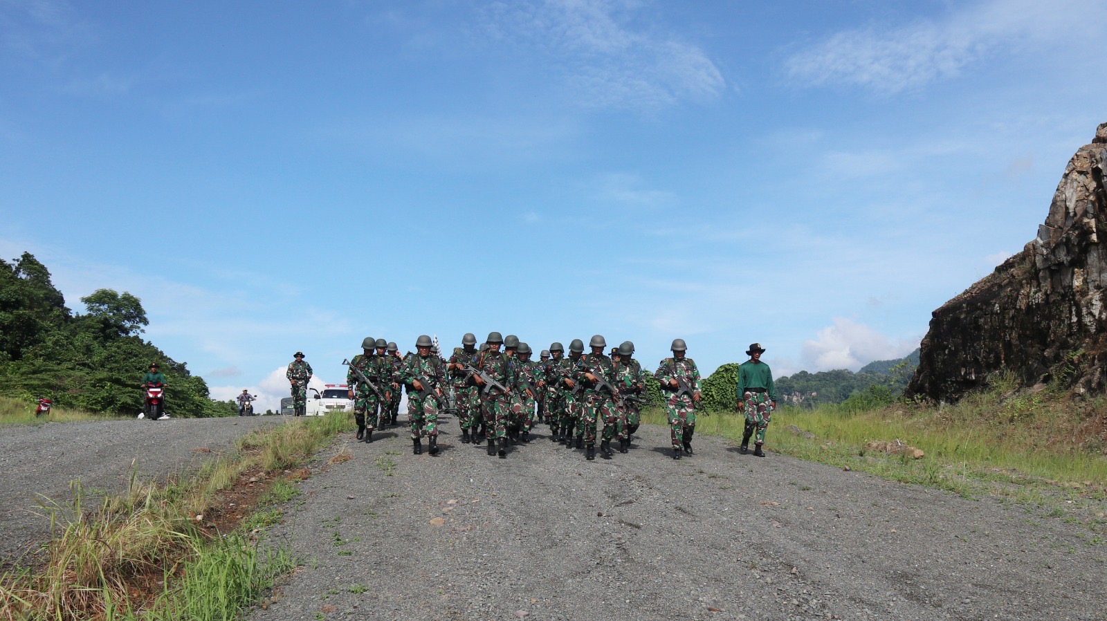 Dengan penuh semangat, para prajurit menyelesaikan rute dengan membawa perlengkapan tempur standar. Sepanjang perjalanan, mereka menghadapi berbagai tantangan medan yang menguji ketahanan fisik dan mental.