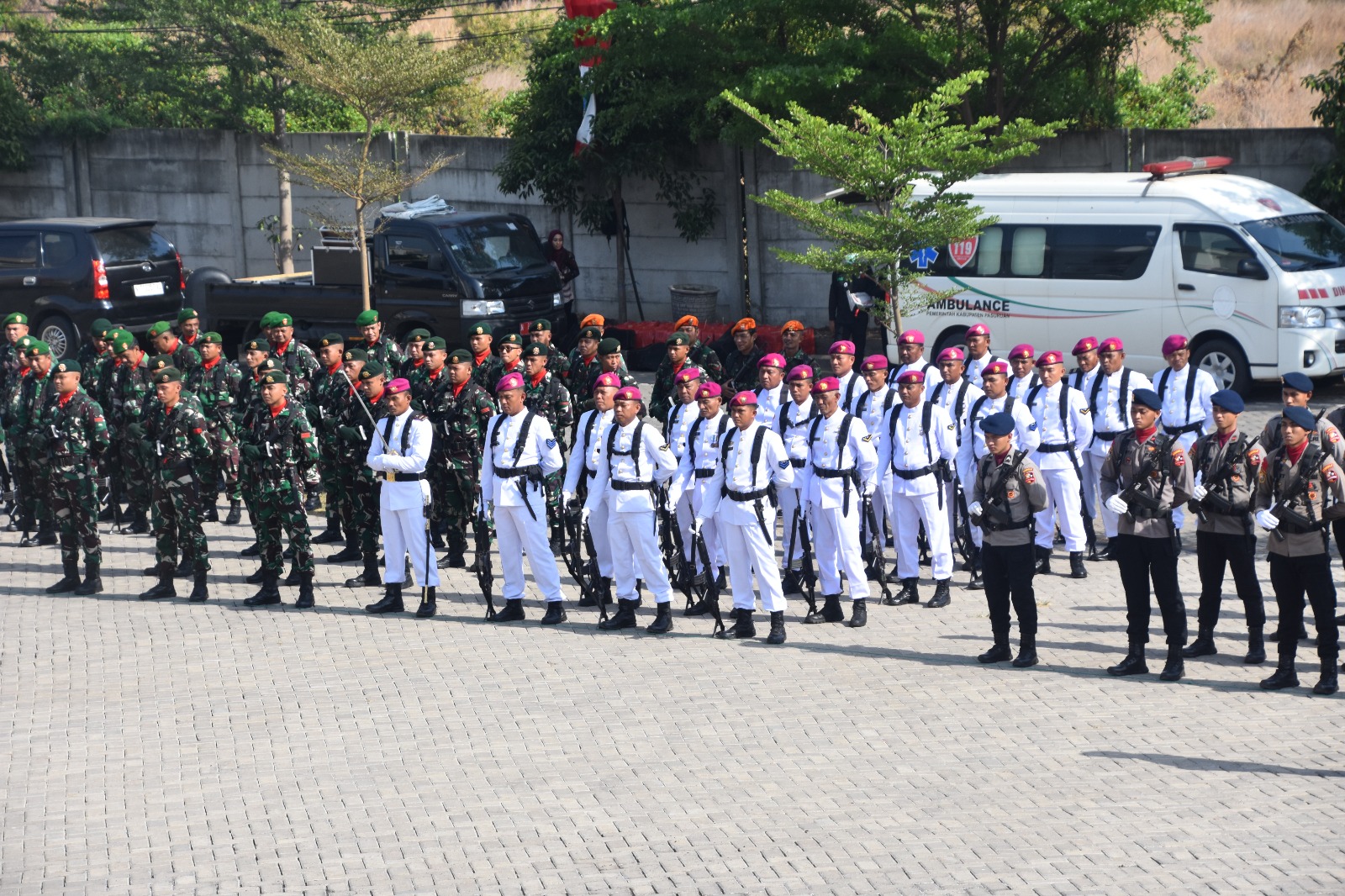 Dispen Kormar (Pasuruan). Pusat Latihan Tempur Marinir (Puslatpurmar) 3 Grati juga serta dalam Upacara Kesaktian Pancasila yang digelar di halaman Gedung Maslahat, Komplek Perkantoran Kabupaten Pasuruan. Upacara yang dilaksanakan untuk memperingati Kesaktian Pancasila mengusung tema âBersama Pancasila Kita Wujudkan Indonesia Emasâ ini dihadiri oleh berbagai elemen masyarakat dan pejabat setempat. Selasa (1/10/2024).