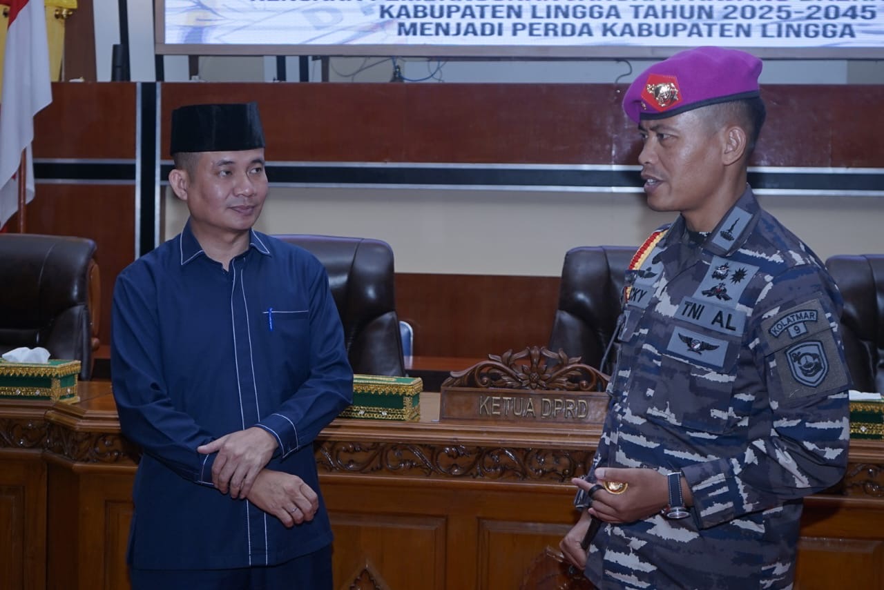 TNI AL, Dispen Kormar (Dabo Singkep) - Komandan Pusat Latihan Pertempuran Marinir (Danpuslatpurmar) 9 Dabo Singkep Mayor Marinir Ricky Sandro M.Tr.Opsla menjalin kerjasama dengan DPRD Kabupaten Lingga guna menjaga kestabilan daerah dan kesejahteraan rakyat khususnya Kabupaten Lingga, Selasa