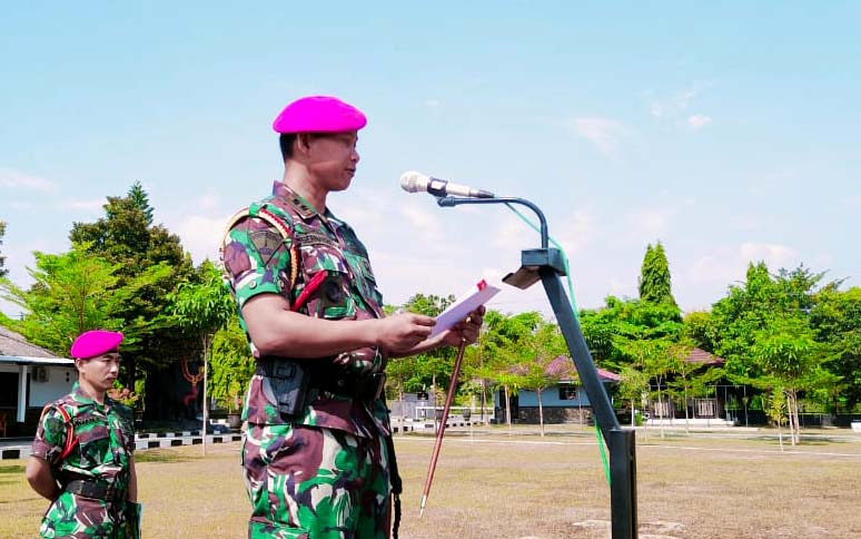 Dispen Kormar (Pasuruan). Briefing Kawasdal Danpuslatpurmar 3 Grati Letkol Marinir Bernardus Yudi Ari W.,M.Tr.,Opsla pada penutupan latihan Pratugas Satgasmar Pam Ambalat XXX Dan Pulau Terluar XXVIII Ta. 2024 di lapangan apel Puslatpurmar 3 Grati, Pasuruan, Senin (03/06/2024).