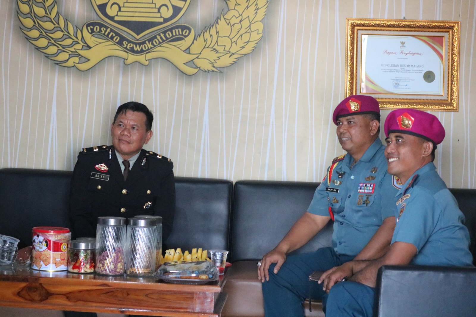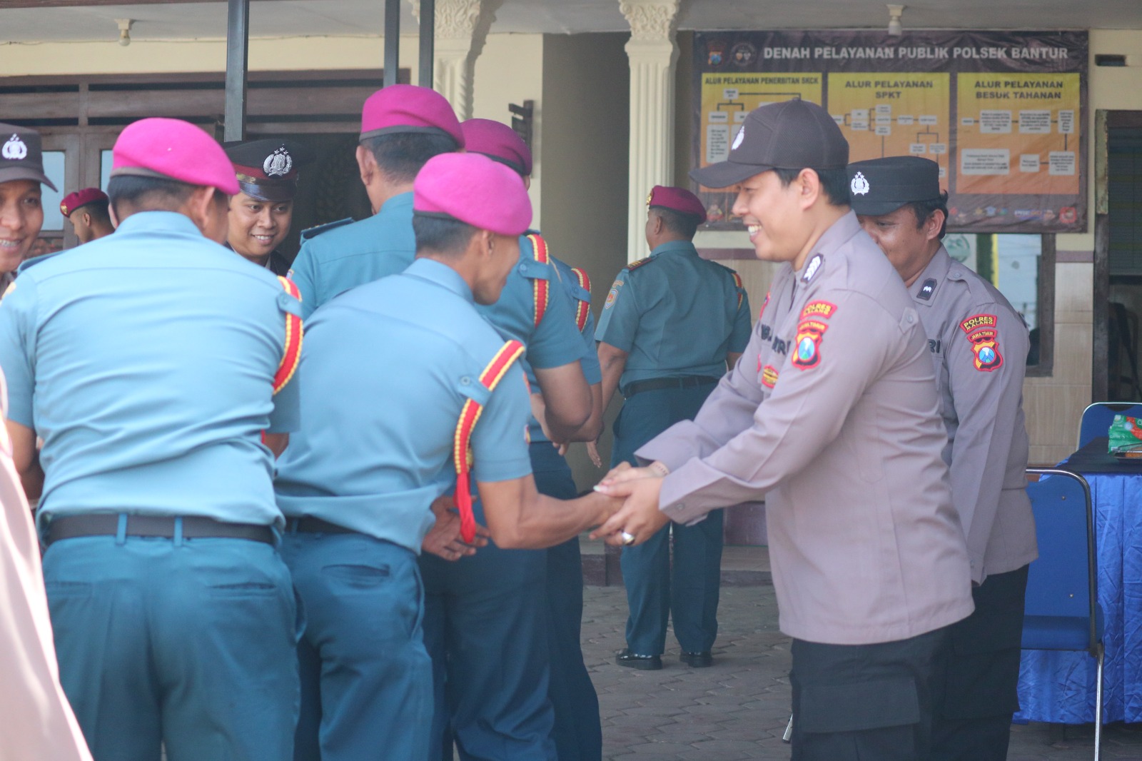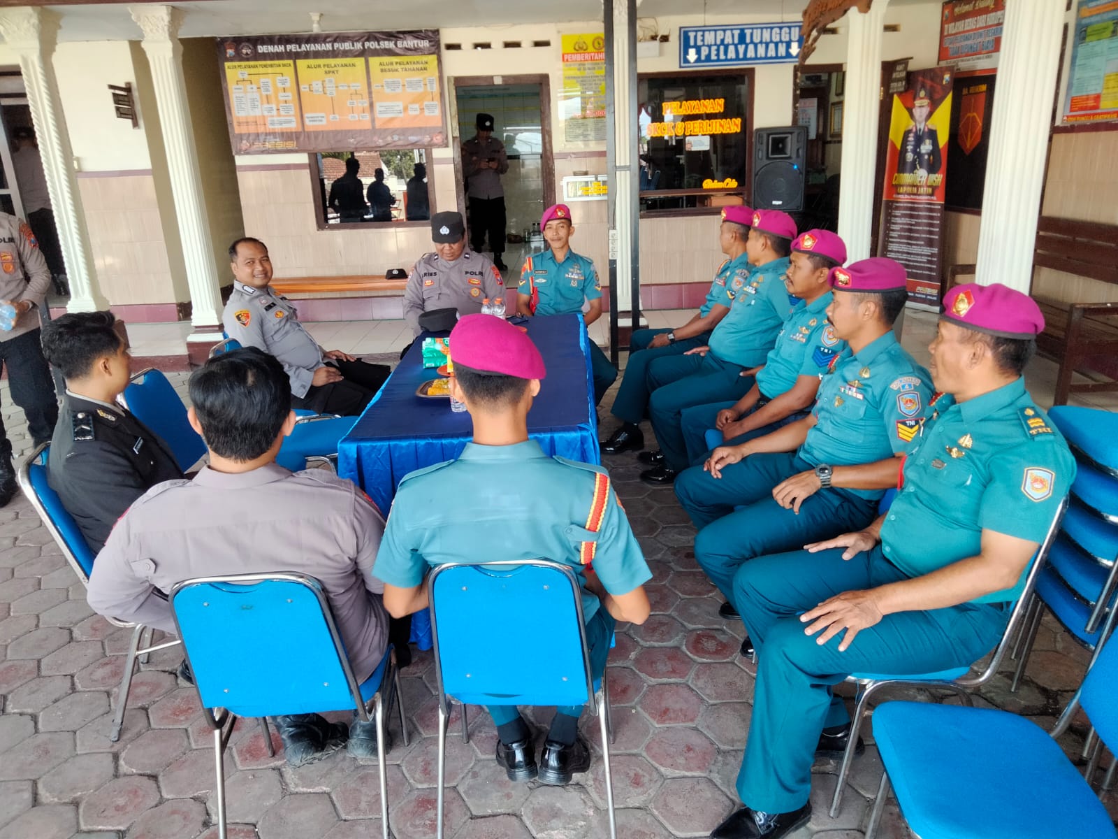 Dispen Kormar ( Malang ) Sebagai bentuk Sinergitas TNI - Polri di hari ulang tahun Bhayangkara ke 78, pelatih Puslatpurmar-4 Purboyo anjangsana ke Polsek Bantur Kabupaten Malang, Senin (01/07/2024).