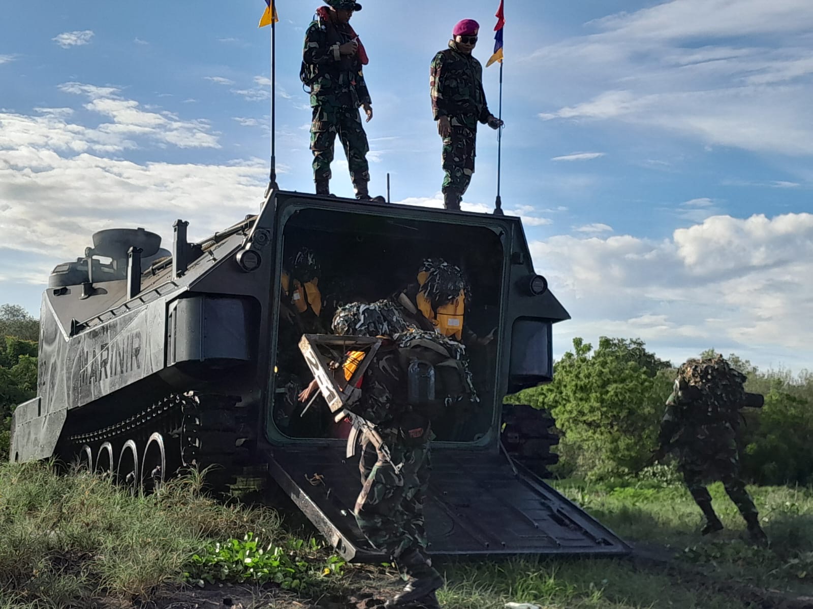 Turut hadir dalam kegiatan, DanPusdikbanpur Kodikmar Kolonel Marinir Rajiman S.E.M.Tr.Hanla,MM.., Kadep Opsdik Kodikmar Letkol Marinir Arif Budiman., Danseba Kav Kodikmar Letkol Marinir Hariadi Akmur., Danyon Ranratfib 2 Mayor Marinir Arif Wahyudi, M. Tr. Opsla.