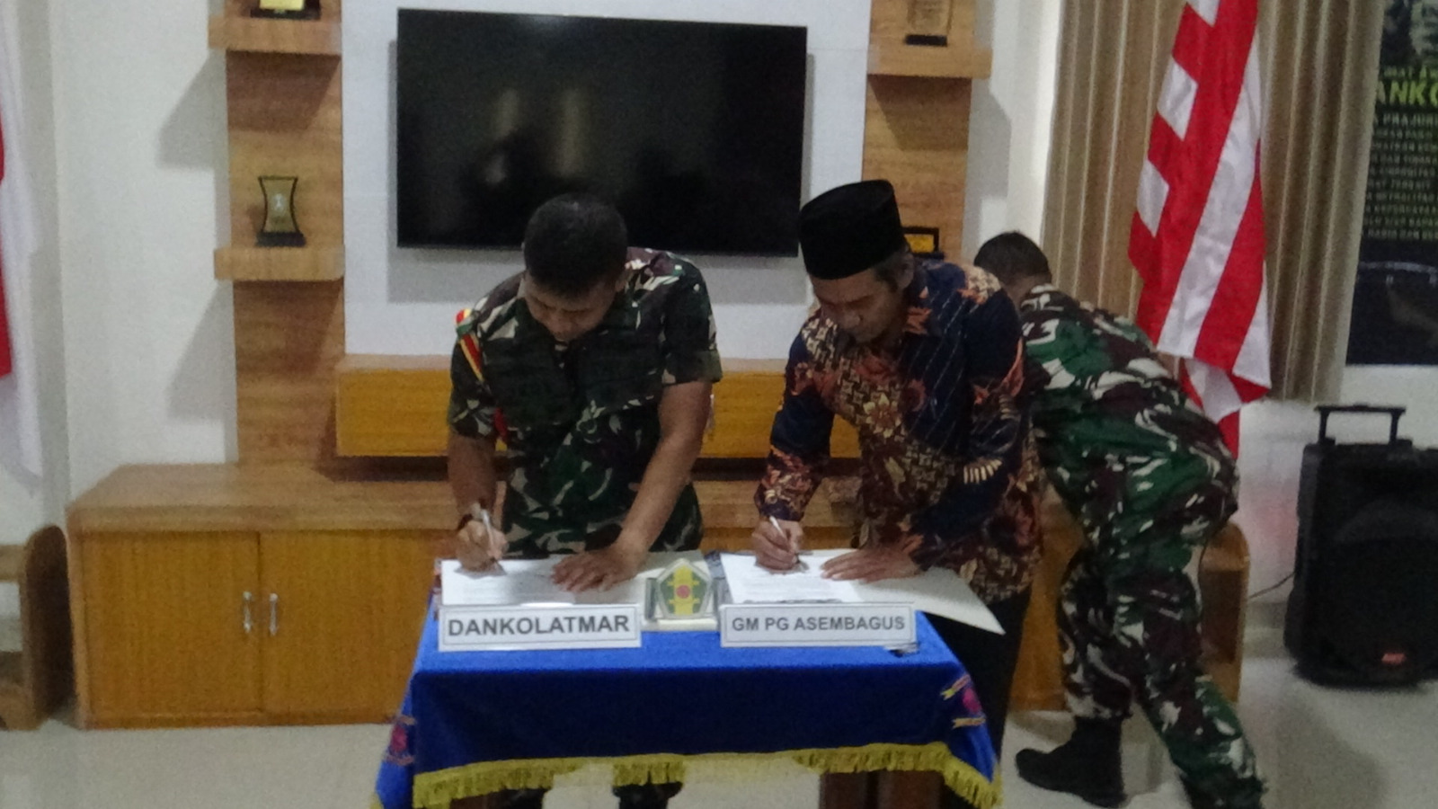 Kegiatan diawali dengan mempersembahkan dan membaca PKS dilanjutkan dengan penandatangan PKS oleh Dankolatmar dan General Manager PG Asembagus Bpk Mulyono.