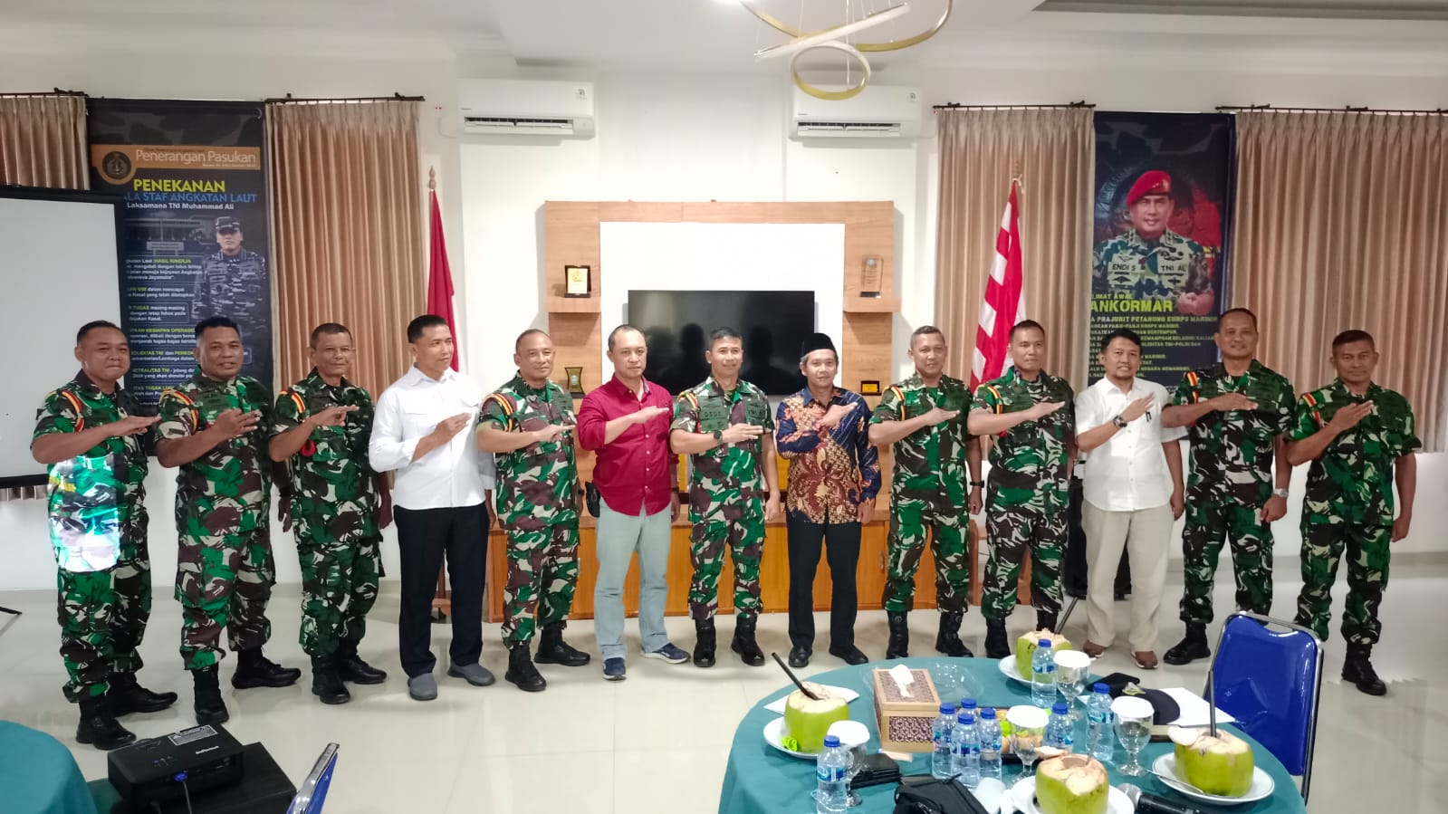 Dispen Kormar Situbondo - Komandan Pusat Latihan Pertempuran Marinir (Danpuslatpurmar) 5 Walikota Baluran Marinir Khairun Andy Sinaga., M.Tr., Opsla mendampingi Komandan Komando Latihan Marinir (Dankolatmar) Kolonel Marinir Dede Harsana., SAP, M.Han., melaksanakan penandatanganan Perjanjian Kerjasama (PKS) pinjam pakai Mess Keris Samudra antara Kolatmar dan PT Sinergi Gula Nusantara (GSN) di ruang tamu Puslatpurmar 5 Baluran. Ds Sumberwaru, Kecamatan Banyuputih Kabupaten Situbondo. Jum'at (14/02/2025).