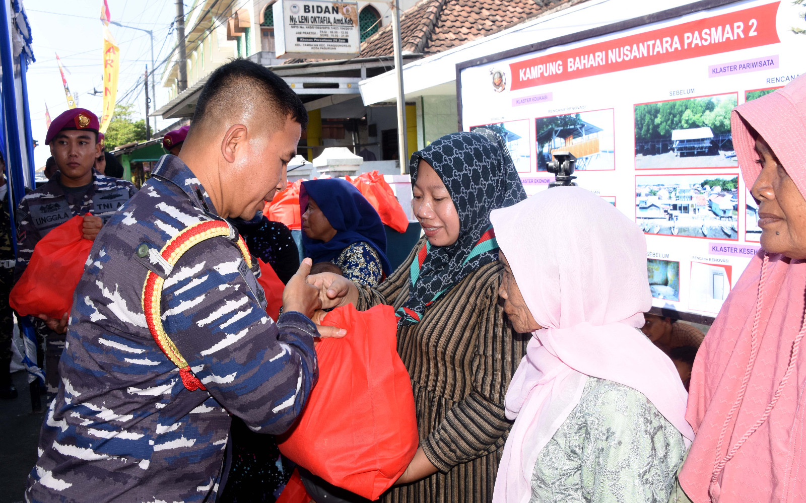 Acara berlanjut dengan pembagian sembako oleh Danpasmar 2 dan diikuti oleh pejabat yang hadir, foto bersama serta ramah tamah.