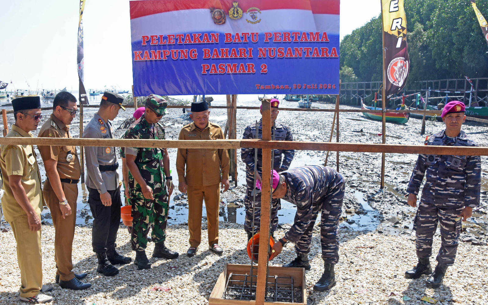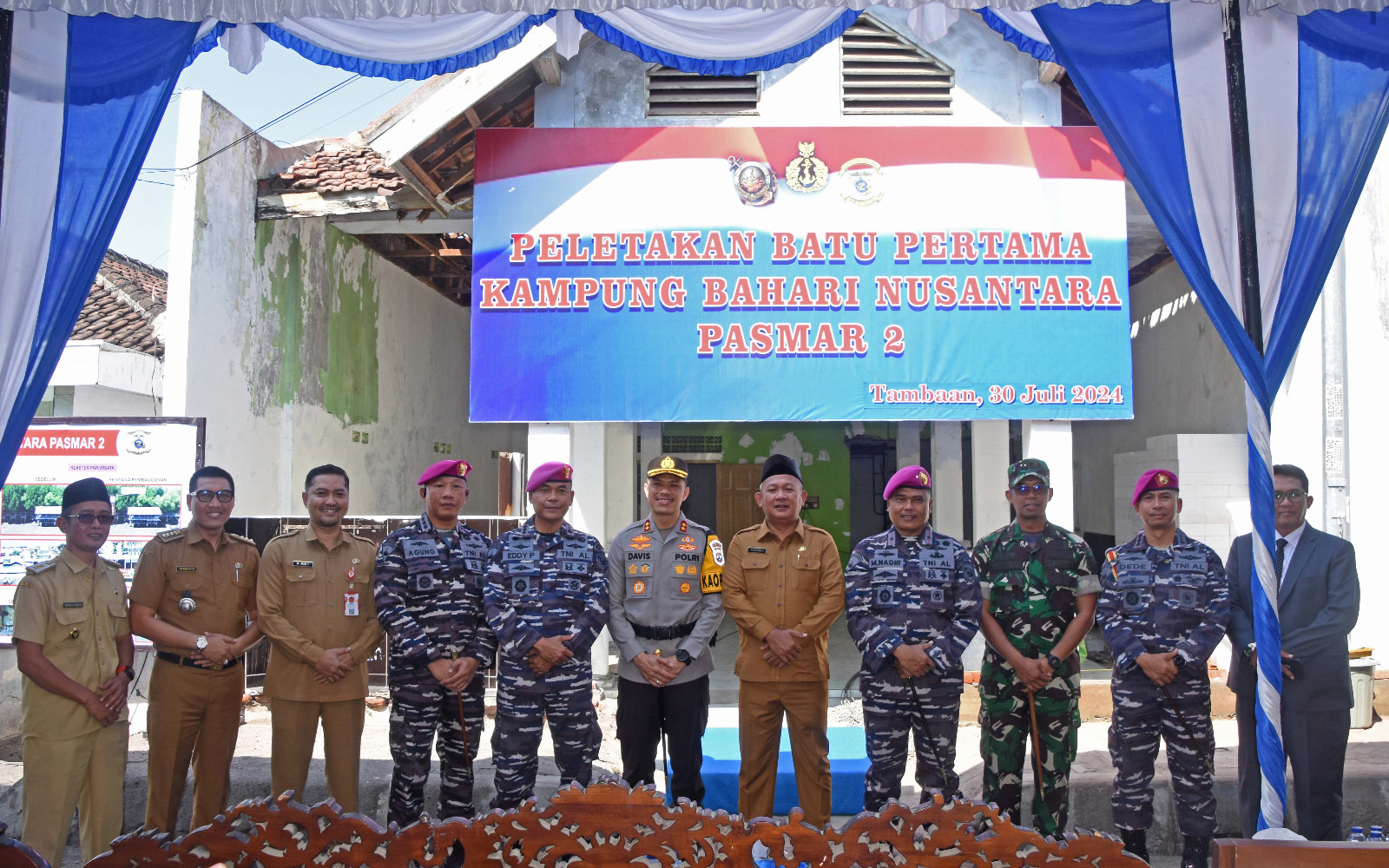 Dispen Kormar (Pasuruan). Komandan Komando Latih Korps Marinir (Dankolatmar) Kolonel Marinir Dede Harsana S.A.P., M.Han, turut menghadiri peletakan batu pertama Kampung Bahari Nusantara (KBN) oleh Danpasmar 2 Brigjen (Mar) Muhammad Nadir M.Tr. Opsla bekerja sama dengan Pemda Kota Pasuruan, Ds Tambaan, Panggungrejo, Pasuruan, Selasa (30/07/2024).