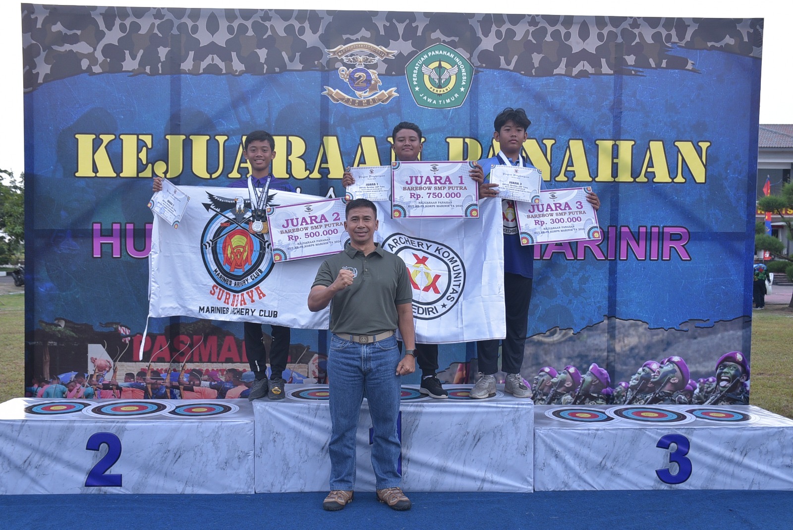 Dalam kesempatan tersebut, Dankolatmar menyerahkan penghargaan dan medali kepada pemenang Dankormar Archery Competition tahun 2024 kategori Barebow SMP Putra.