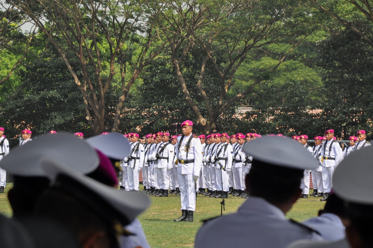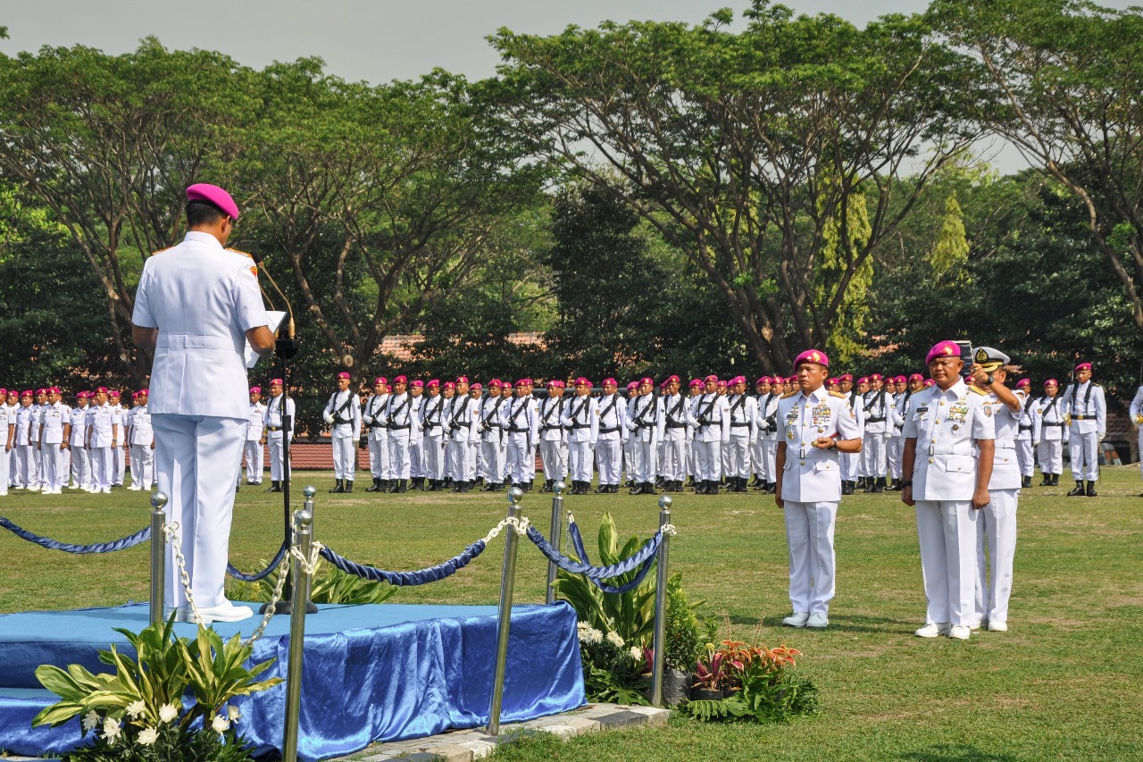 TNI AL, Dispen Kormar (Surabaya) - Komandan Komando Latih Korps Marinir (Dankolatmar) Kolonel Marinir Dede Harsana, S.A.P, M.Han., menghadiri upacara serah terima jabatan (Sertijab) Komandan Komando Pendidikan Marinir (Dankodikmar), bertempat di Lapangan Upacara Kesatrian Ewa Pangalila, Gunungsari, Surabaya, Sabtu (09/11/2024).