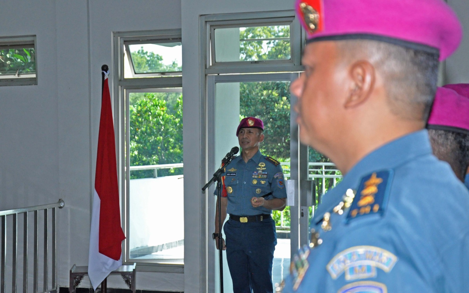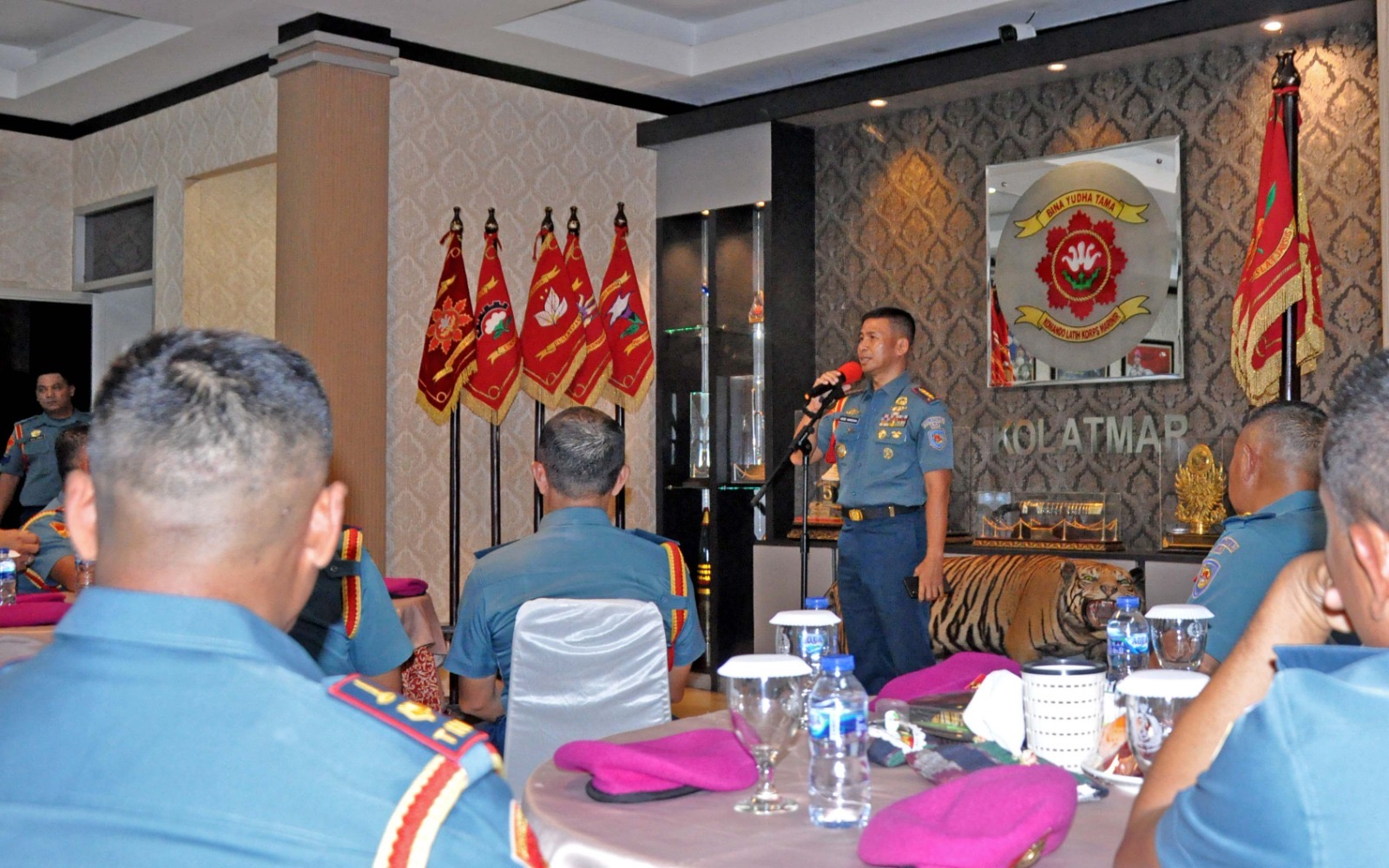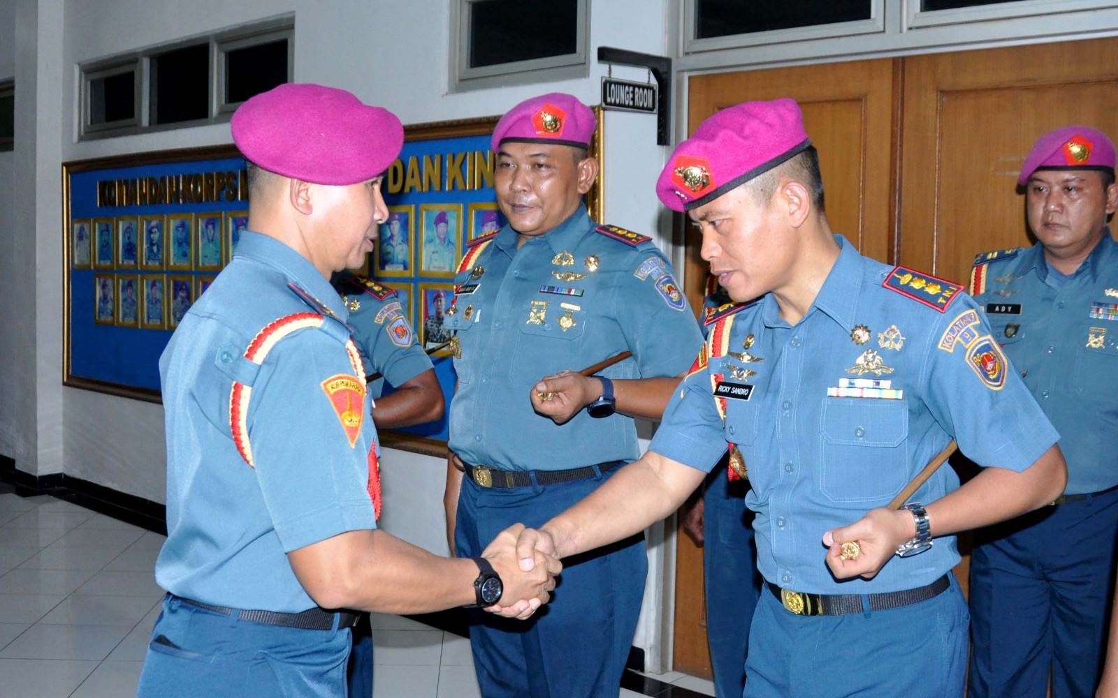 Dispen Kormar (Pasuruan). Komandan Komando Latih Korps Marinir (Dankolatmar) Kolonel Marinir Dede Harsana, S.A.P., M.Han menerima laporan kenaikan pangkat Perwira Kolatmar kala waktu 01 April 2025 di lobi Mako Kolatmar Grati Pasuruan, Selasa (08/04/2025).