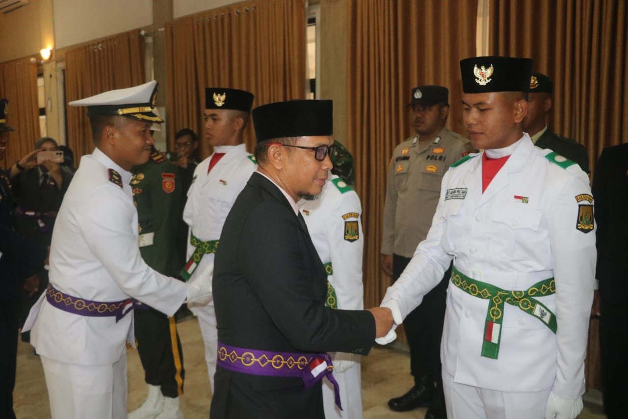 Komandan Puslatpur Marinir 6 Antralina, Mayor Marinir Ahmad Yani M.Tr.Opsla menghadiri kegiatan Upacara Pengukuhan Paskibraka Kabupaten Sukabumi, bertempat di Aula Setda Kabupaten Sukabumi, Jalan Siliwangi, No.10, Palabuhanratu, Kab Sukabumi, Jawa Barat, Kamis (15/08/2024).