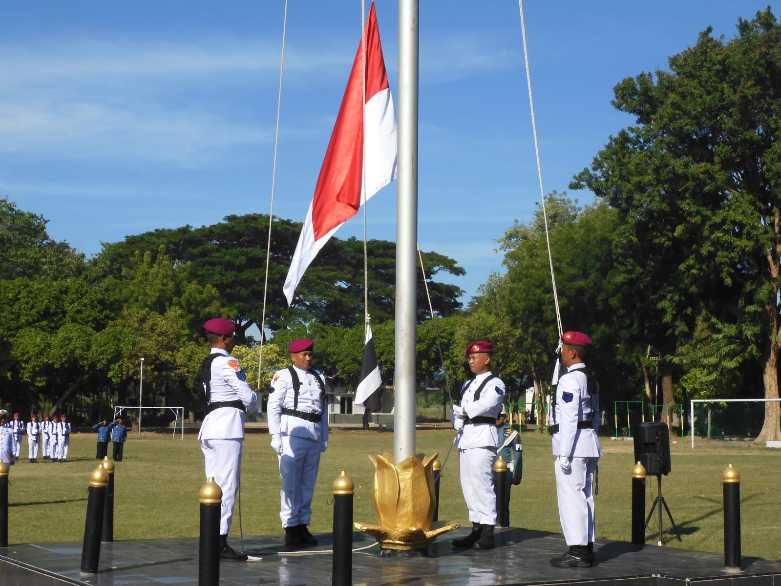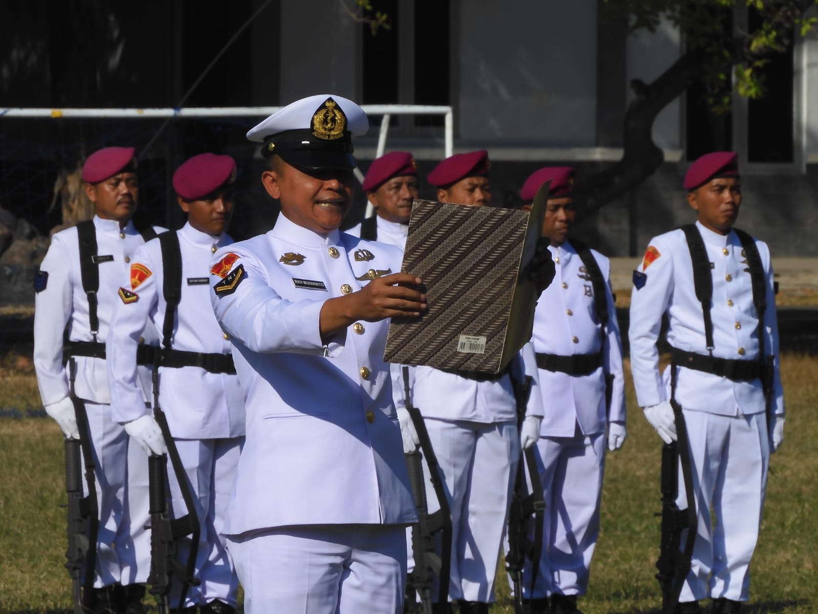 Dispen Kormar Situbondo - Prajurit Pusat Latihan Pertempuran Marinir -5 Baluran melaksanakan Upacara Hari Lahir Pancasila dengan tema " Pancasila Jiwa Pemersatu Bangsa Menuju Indonesia Emas 2045 " di lapangan apel Puslatpurmar -5 Baluran. Sumberwaru Banyuputih, Situbondo. Sabtu (1/6/2024).