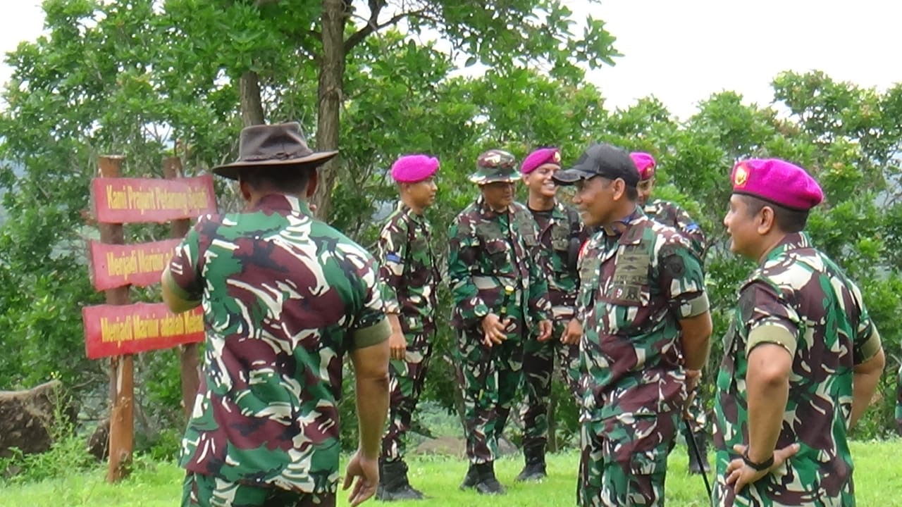 Dispen Kormar Situbondo - Komandan Pusat Latihan Pertempuran Marinir (Puslatpurmar) 5 Baluran Mayor Marinir Khairun Andy Sinaga., M.Tr. Opsla., menyambut Gubernur AAL Laksamana Muda TNI Dato Rusman S.N.,S.E.,M.Si.,M.Tr.Opsla beserta rombongan di Markas Komando (Mako) Puslatpurmar -5 Baluran. Ds Sumberwaru Kecamatan Banyuputih Kabupaten Situbondo. Senin, (20/01/2025).