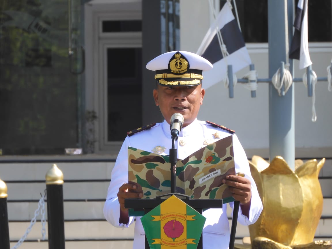 Dispen Kormar Situbondo - Dalam rangka memperingati Upacara Hari Kesakitan Pancasila ke 59 tahun 2024, seluruh Prajurit dan Pegawai Negeri Sipil (PNS) Pusat Latihan Pertempuran Marinir (Puslatpurmar) -5 Baluran melakukan Upacara di lapangan Puslatpurmar -5 Baluran. Ds Sumberwaru Kec Banyuputih kab Situbondo. Selasa (10/1/2024).