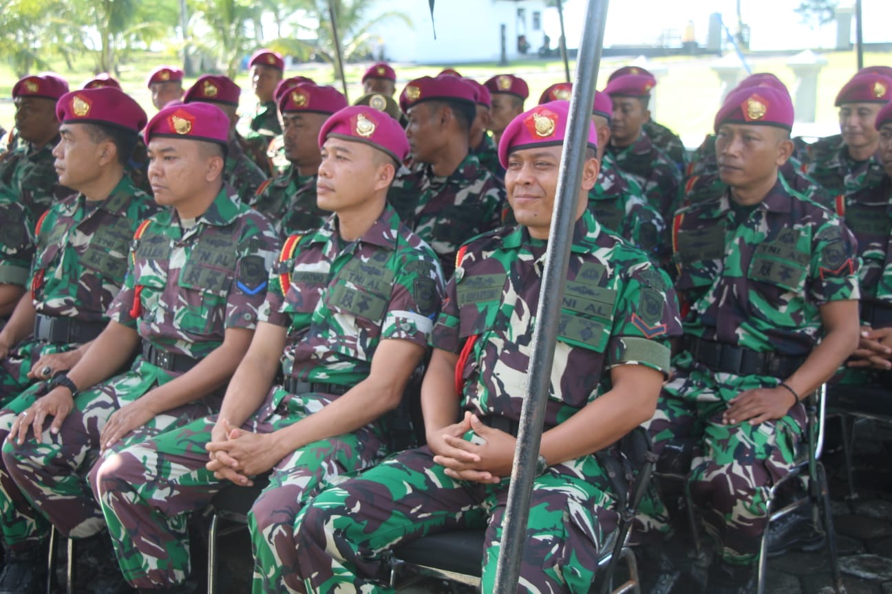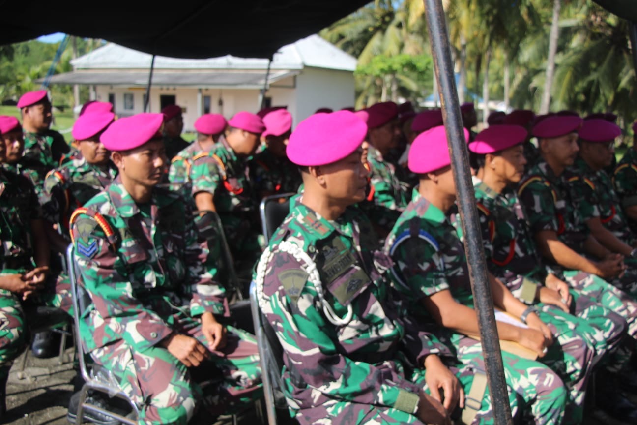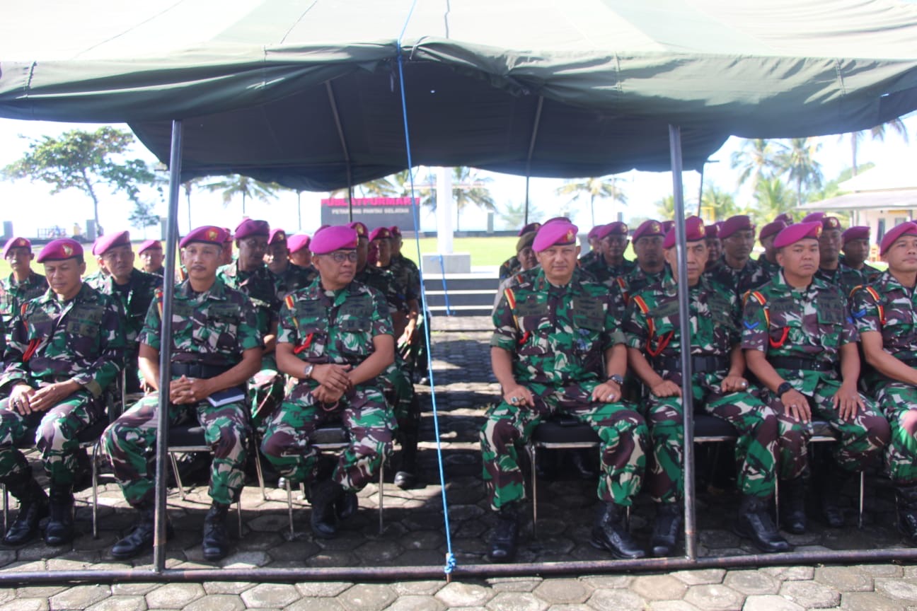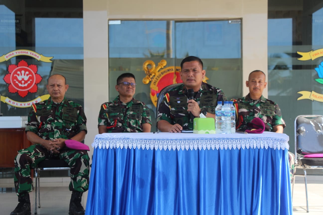 Dispen Kormar (Banyuwangi)- Komandan Pusat Latihan Pertempuran Marinir (Danpuslatpurmar) 7 Lampon Mayor Marinir Zainal Arifin Tanjung M.Tr.Opsla memberikan Jam Komandan kepada seluruh Prajurit dan PNS bertempat di halaman Mako Puslatpurmar 7 Lampon, Senin (21/04/2025).