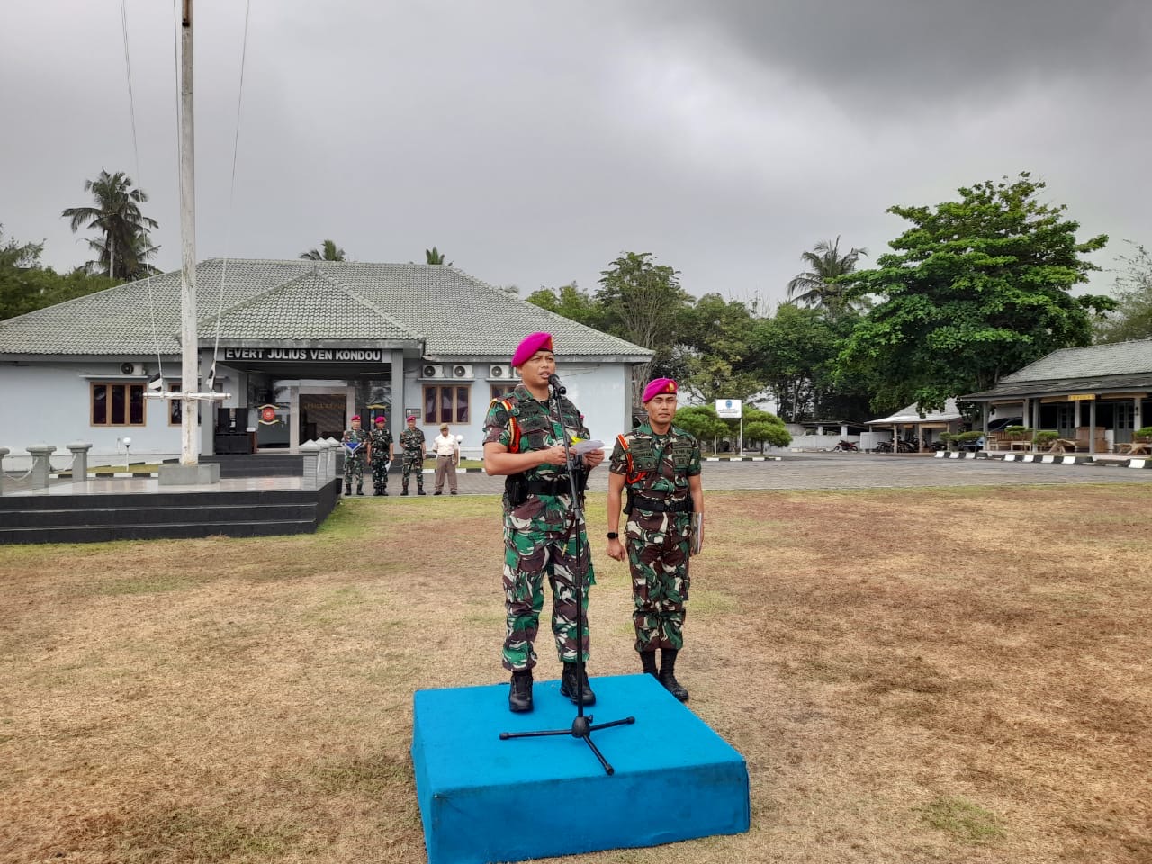 Komandan Pusat Latihan Pertempuran Marinir (Danpuslatpurmar) 7 Lampon Letnan Kolonel Marinir Moch. Sidik R M. Tr. Opsla memimpin upacara upacara kenaikan pangkat anggotanya periode 01-10-2024 yang bertempat di Lapangan Mako Puslatpurmar 7 Lampon Dsn. Ringinsari Pesanggaran Banyuwangi, Selasa(08/10/2024).