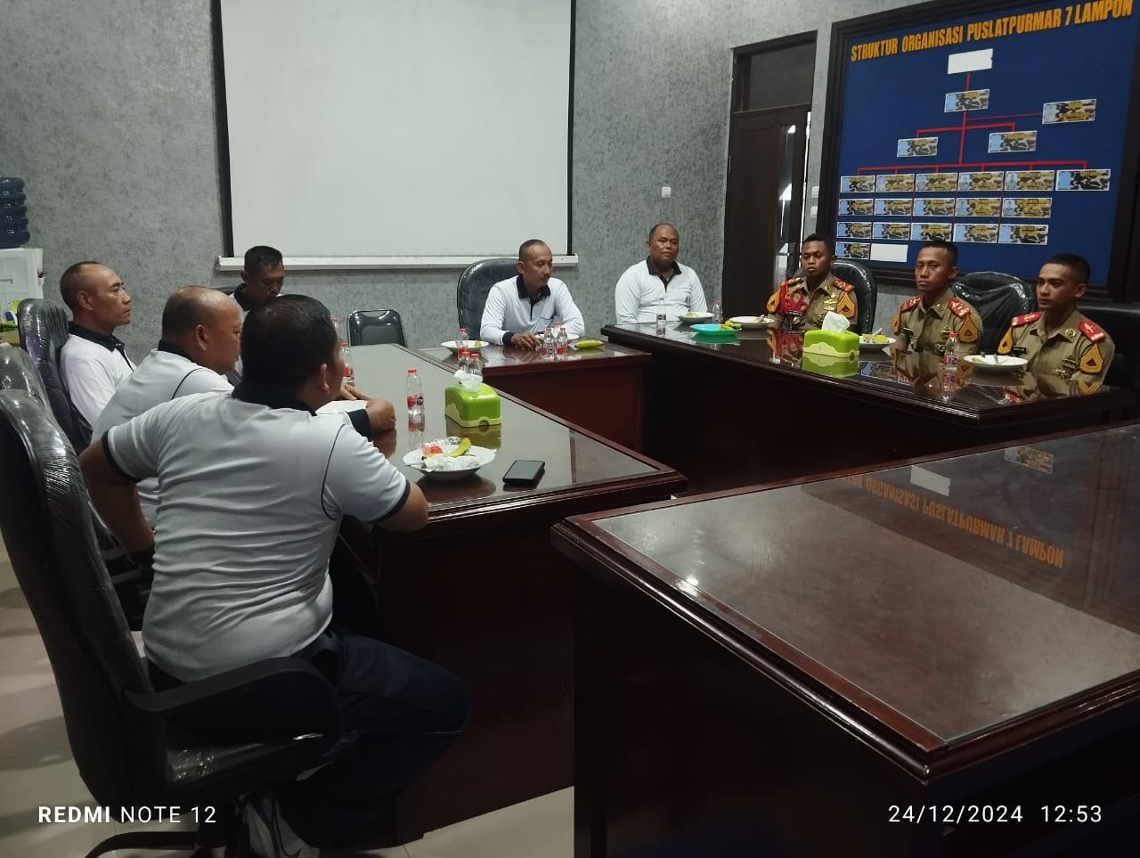 Dispen Kormar (Banyuwangi)- Komandan Pusat Latihan Petempuran Marinir (Danpuslatpurmar)7 Lampon Mayor Marinir Zainal Arifin Tanjung M. Tr. Opsla, menerima kunjungan 3 Siswa Kadet Taruna Akademi Angkatan Laut (AAL), bertempat di Longe Room Puslatpurmar 7 Lampon Dsn.Ringinsari Pesanggaran Banyuwangi, Selasa (24/12/2024).
