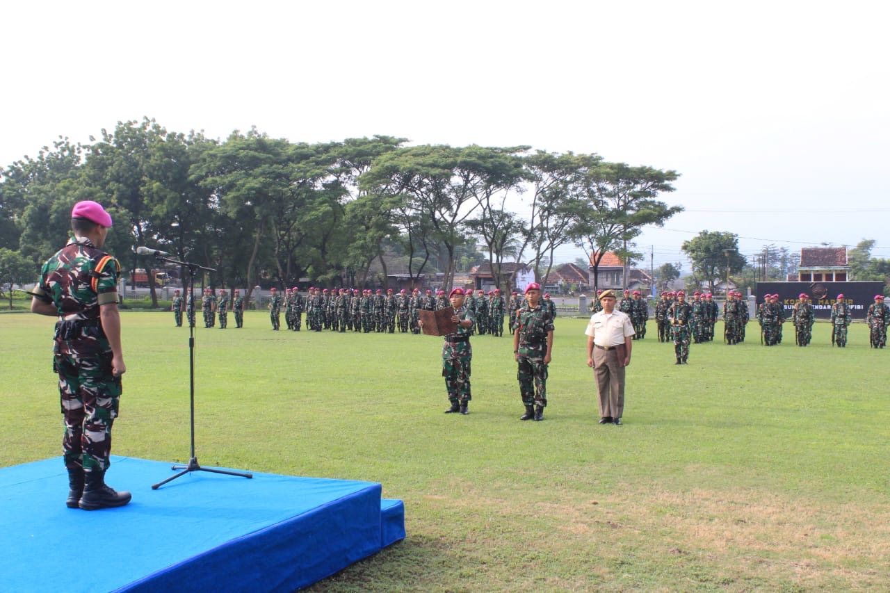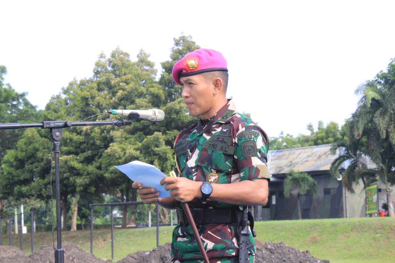 Dispen Kormar (Pasuruan). Dalam menyampaikan amanat KASAL Laksamana TNI Dr. Muhammad Ali, S.E., M.M., M.Tr.Opsla. dengan penuh kehormatan Komandan Pusat Latihan Khusus (Danpuslatsus) Mayor Marinir Alamsya, S.H., M.Tr.Opsla. memimpin upacara 17an di Mako Kolatmar Grati Pasuruan. Senin (17/02/2025).