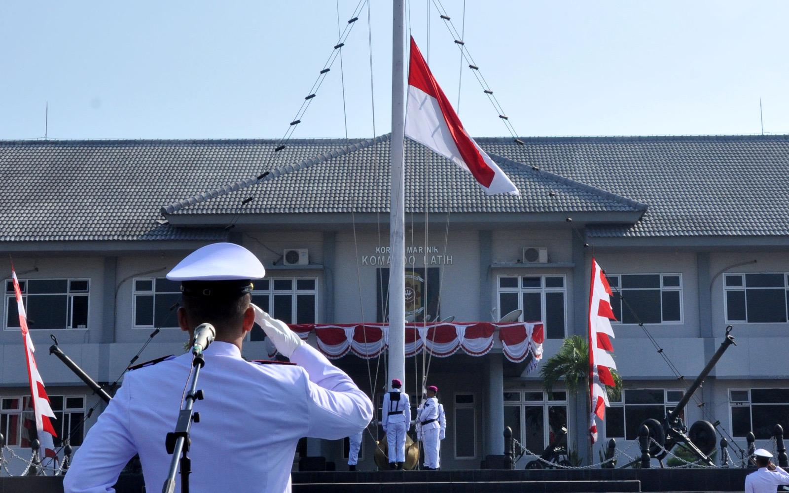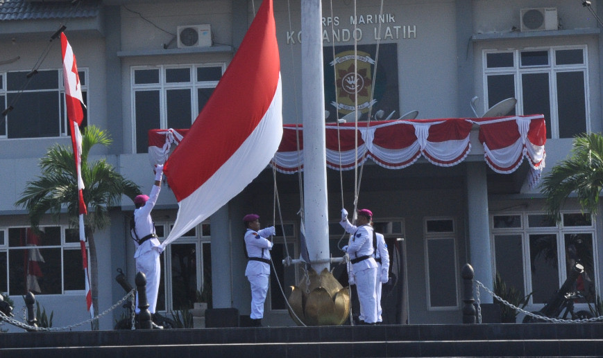 Kegiatan upacara HUT Kemerdekaan RI yang diikuti oleh segenap prajurit Mako Kima Kolatmar, Puslatsus, Puslatpurmar 3 Grati dan Pegawai Negeri Sipil.