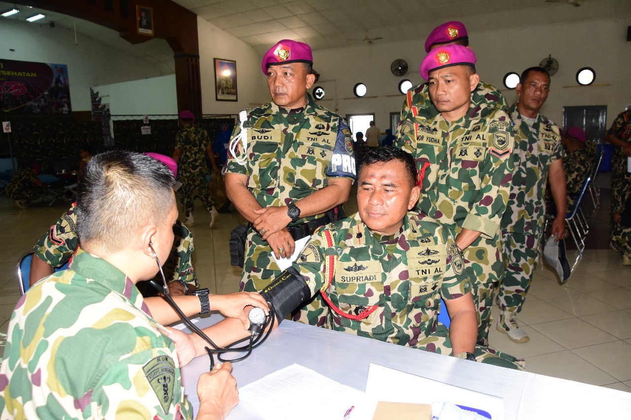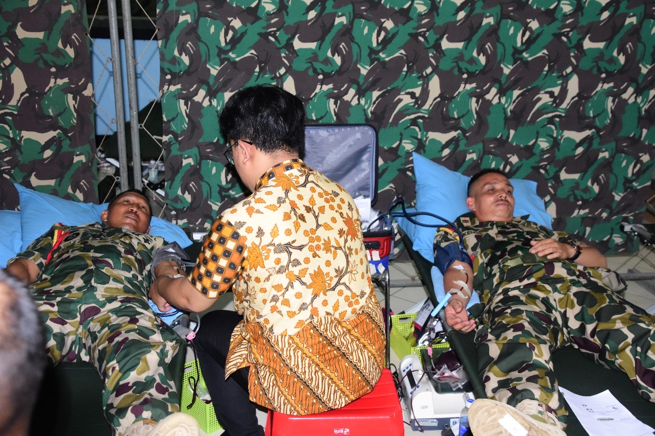Para peserta donor darah yang ditunjuk adalah prajurit yang memenuhi persyaratan sesuai hasil pemeriksaan yang dilakukan oleh tim kesehatan yang diawali dengan pengisian blangko donor darah, pengecekan tekanan darah dan pengecekan Hemoglobin darah,â terang Kapten Laut (K), drg. Endy Mukti Utomo sbg PIC Donor darah.