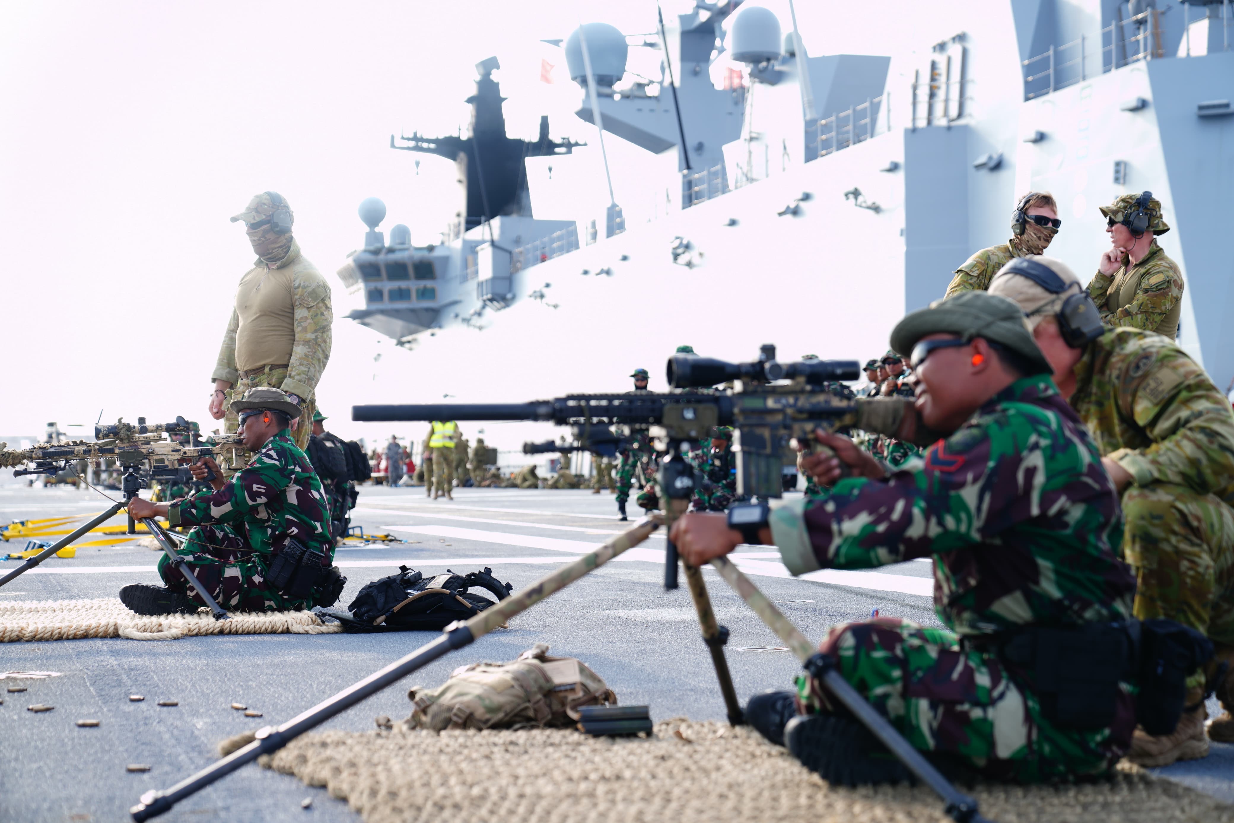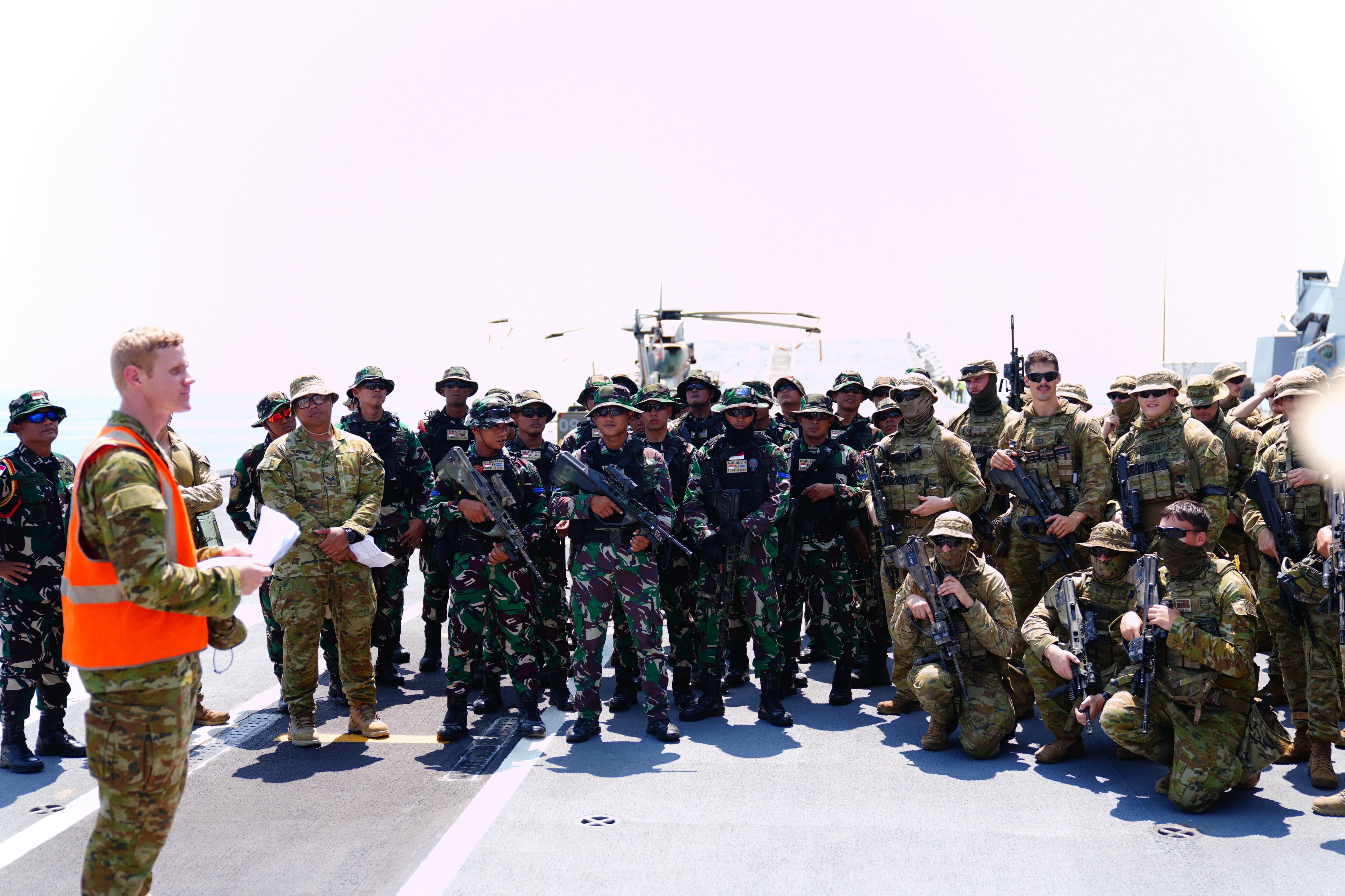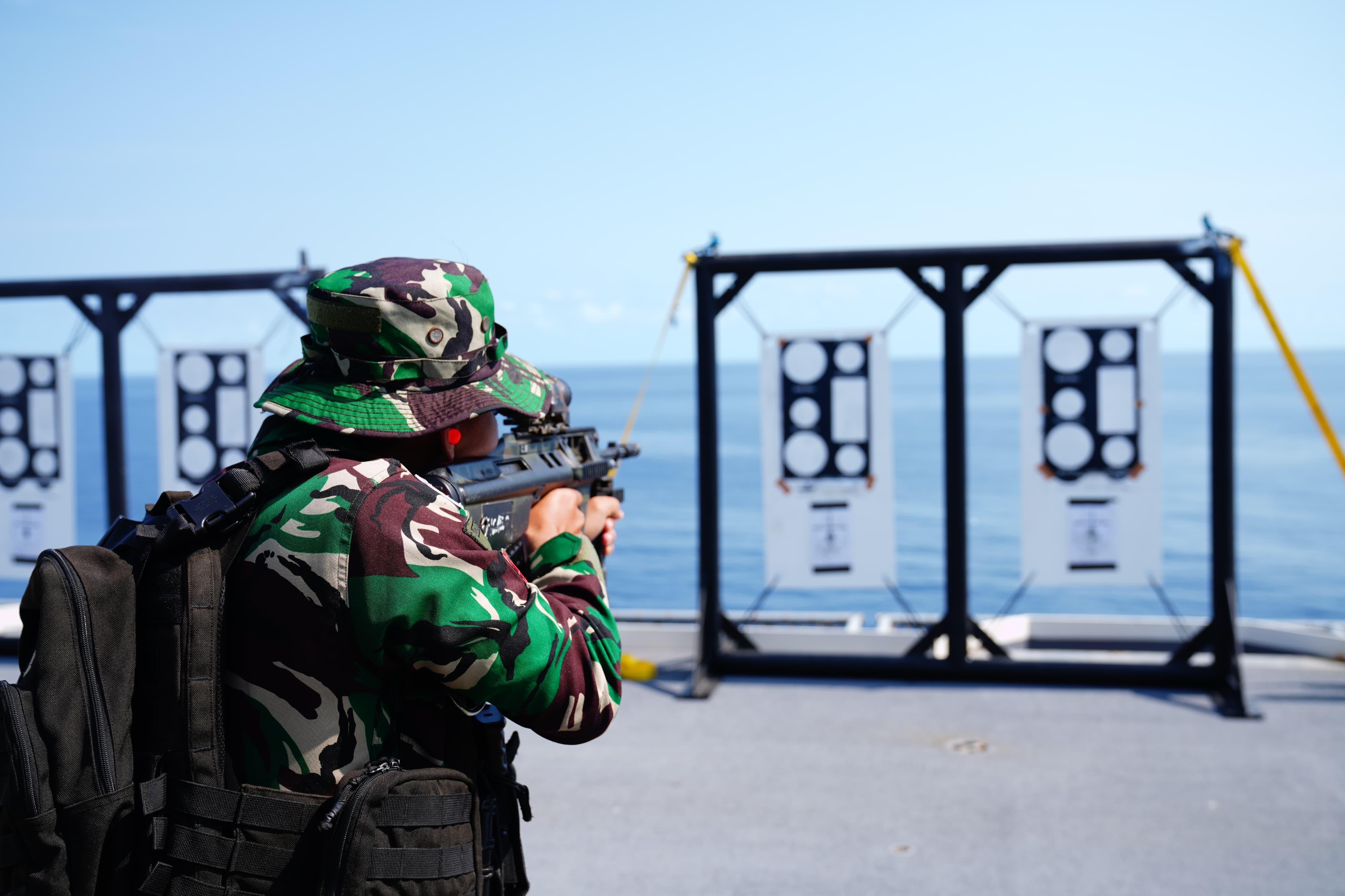 Ditengah pelayarannya menuju perairan Indonesia, Prajurit terbaik Korps Marinir dibawah komando Danpuslatsus juga melaksanakan latihan integrasi di HMAS Adelaide, dengan mengasah kemampuan menembak di geladak Kapal Perang HMAS Adelaide.