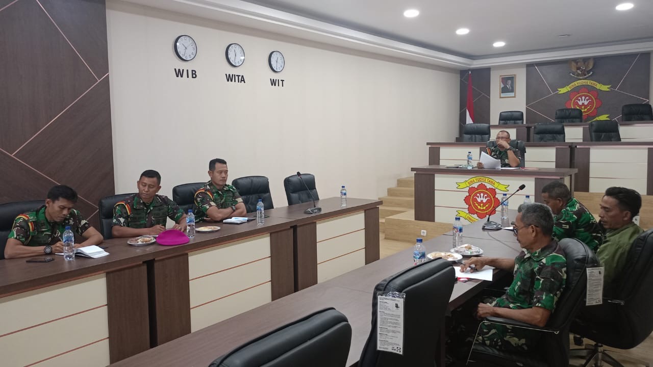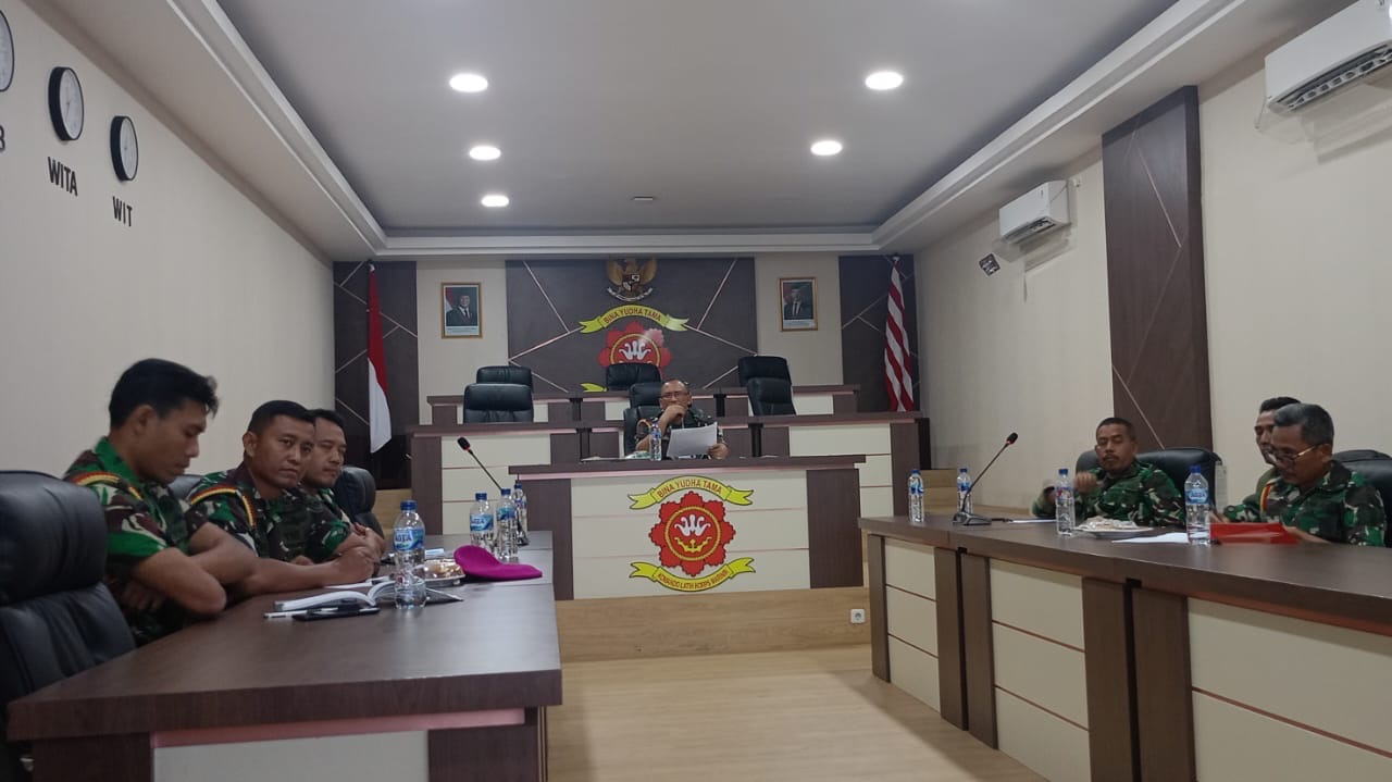 Dispen Kormar (Pasuruan). Evaluasi Program Kerja Staf Intelijen Komando Latih Korps Marinir (Sintel Kolatmar) Ta.2024 dan Progja Ta.2025 dipimpin langsung oleh Pasintel Kolatmar Letkol Marinir Untung Subagyo. SH di ruang Puskodal Mako Kolatmar Grati Pasuruan, Selasa (31/12/2024).