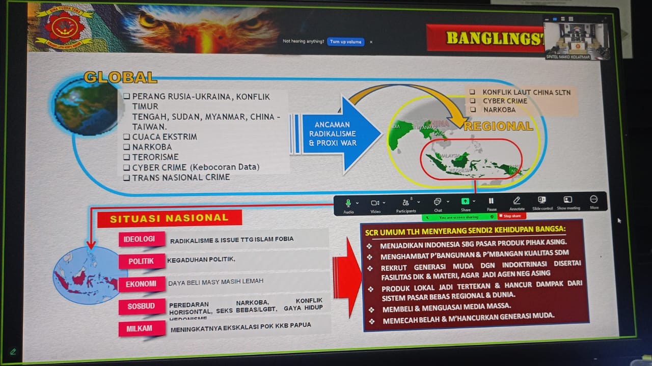 Dalam paparannya Pasintel menyampaikan, situasi secara global dan nasional serta pencapaian sasaran kegiatan di berbagai bidang intelijen meliputi, bidang perencanaan produk intelijen, penyelidikan, pengamanan, penggalangan, Potmar dan penerangan.