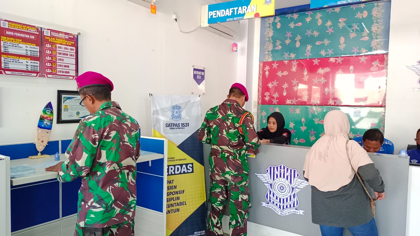 Dispen Kormar Situbondo - Dalam rangka menciptakan ketertiban dan kedisiplinan serta tertib administrasi dalam berlalu lintas Prajurit dan keluarga Pusat Latihan Pertempuran Marinir (Puslatpurmar) -5 Baluran melaksanakan pembuatan Surat Ijin Mengemudi (SIM) secara kolektif di kantor Satuan Penyelenggara Administrasi SIM (Satpas) Polres Situbondo. Arjasa Situbondo, Rabu, (19/6/2024).
