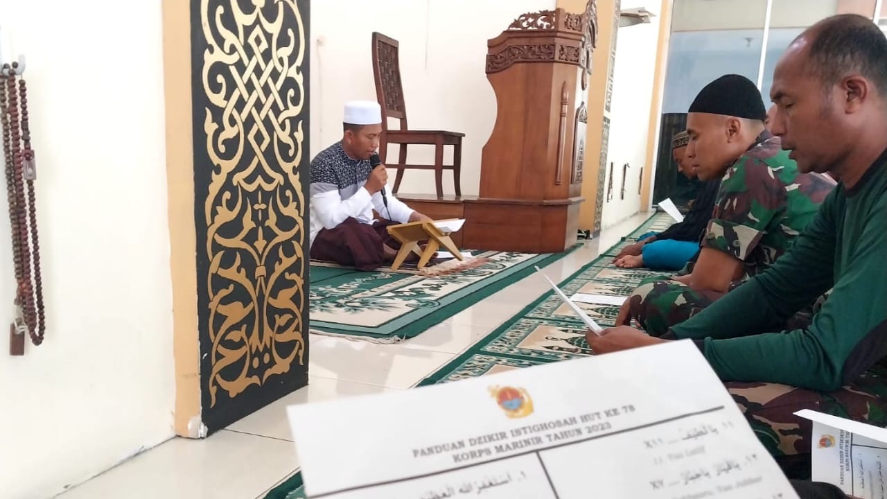 Komando Latih Korps Marinir (Kolatmar) serentak bersama seluruh jajarannya mengelar acara istiqosah dan doa bersama jelang HUT Korps Marinir ke 79 tahun dari Masjid Jannatin Mako Kolatmar Grati, Pasuruan, Kamis (14/11/2024).