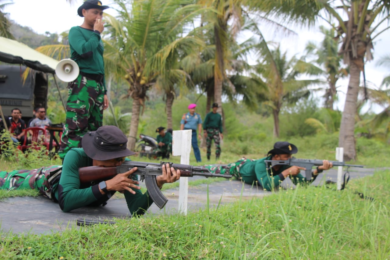 Dispen Kormar (Banyuwangi) - Guna mempererat tali solidaritas dan kebersamaan antara Puslatpurmar 7 Lampon dengan Persatuan Menembak Indonesia (Perbakin) menggelar latihan menembak di lapangan tembak Puslatpurmar 7 Lampon Banyuwangi, Senin (24/06/2024).