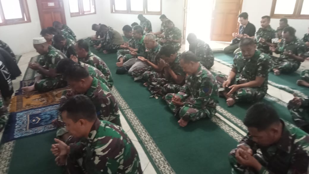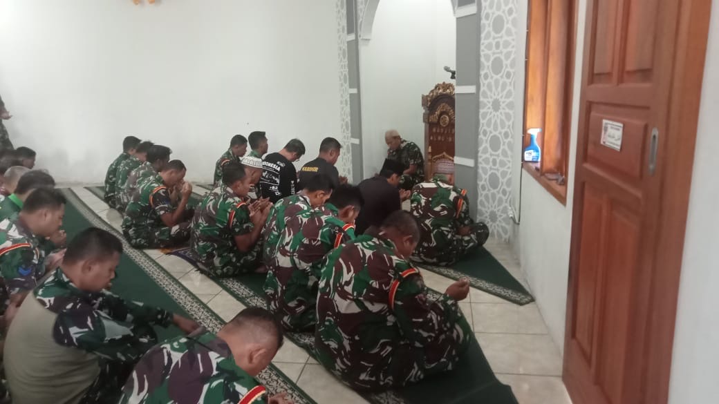 Dispen Kormar (Antralina) Jelang Akhir Tahun 2024 Prajurit Pusat Latihan Pertempuran (Puslatpur) Marinir 6 Antralina melaksanakan istighosah dan doa bersama di Masjid Al Mukmin Puslatpurmar 6 Antralina Sukabumi Selasa (31/12/2024).