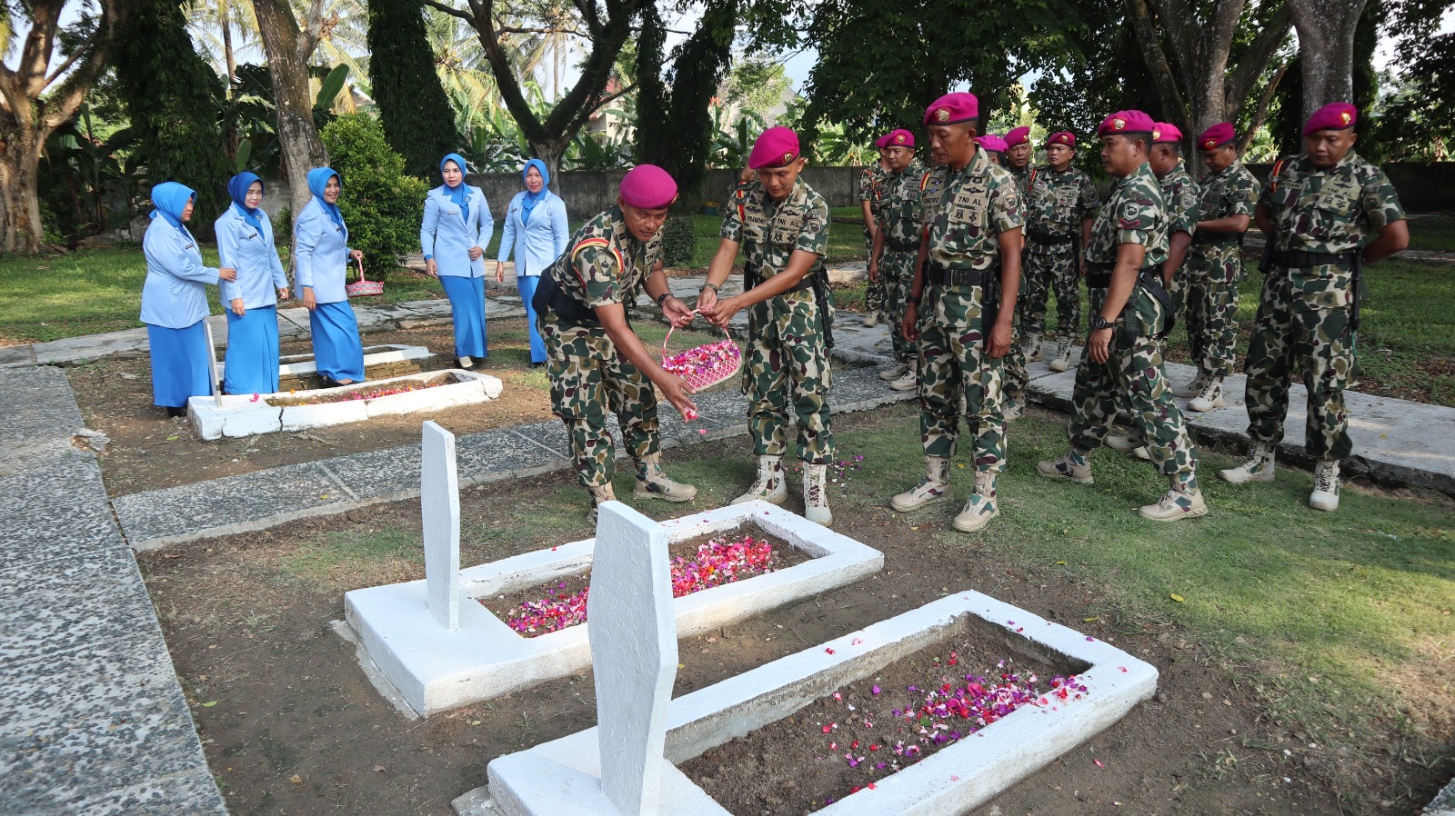 TNI AL, Dispen Kormar (Lampung) â Jelang peringatan Hari Ulang Tahun (HUT) ke-79 Korps Marinir, Komandan Puslatpurmar-8 Teluk Ratai, Mayor Marinir Hardi Mihendi M.Tr.Opsla., memimpin upacara ziarah dan tabur bunga di Taman Makam Pahlawan Kusuma Bangsa, Kalianda, Lampung. Kamis (07/11/2024)