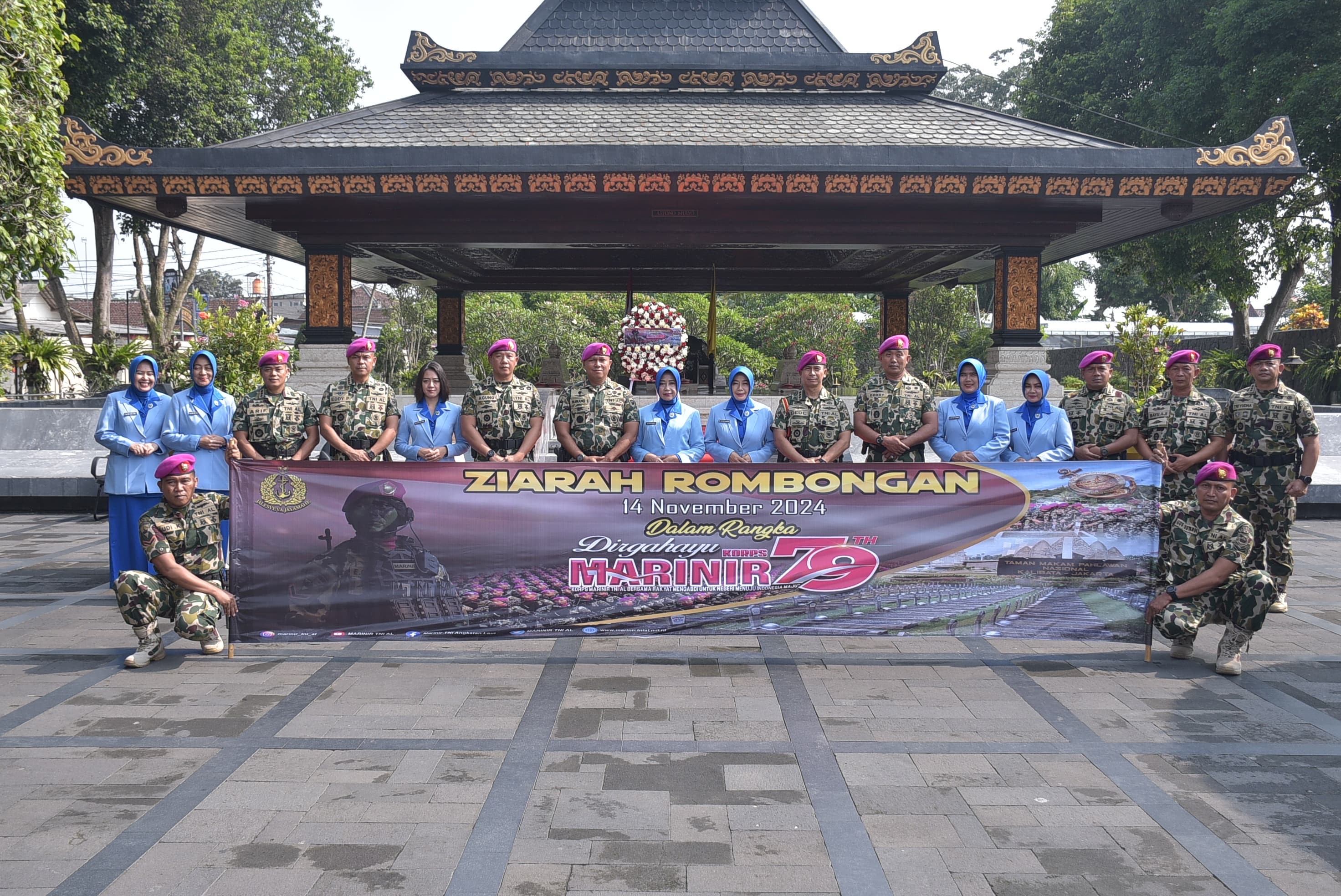 Dispen Kormar (Pasuruan). Ketua Cabang 5 PG Jalasenastri Kormar Ny. Evi Dede Harsana dampingi Dankolatmar pada ziarah rombongan jelang HUT Korps Marinir ke 79 tahun di makam Bung Karno Proklamator kemerdekaan Republik Indonesia, Blitar, Jawa Timur, Kamis (14/11/2024).