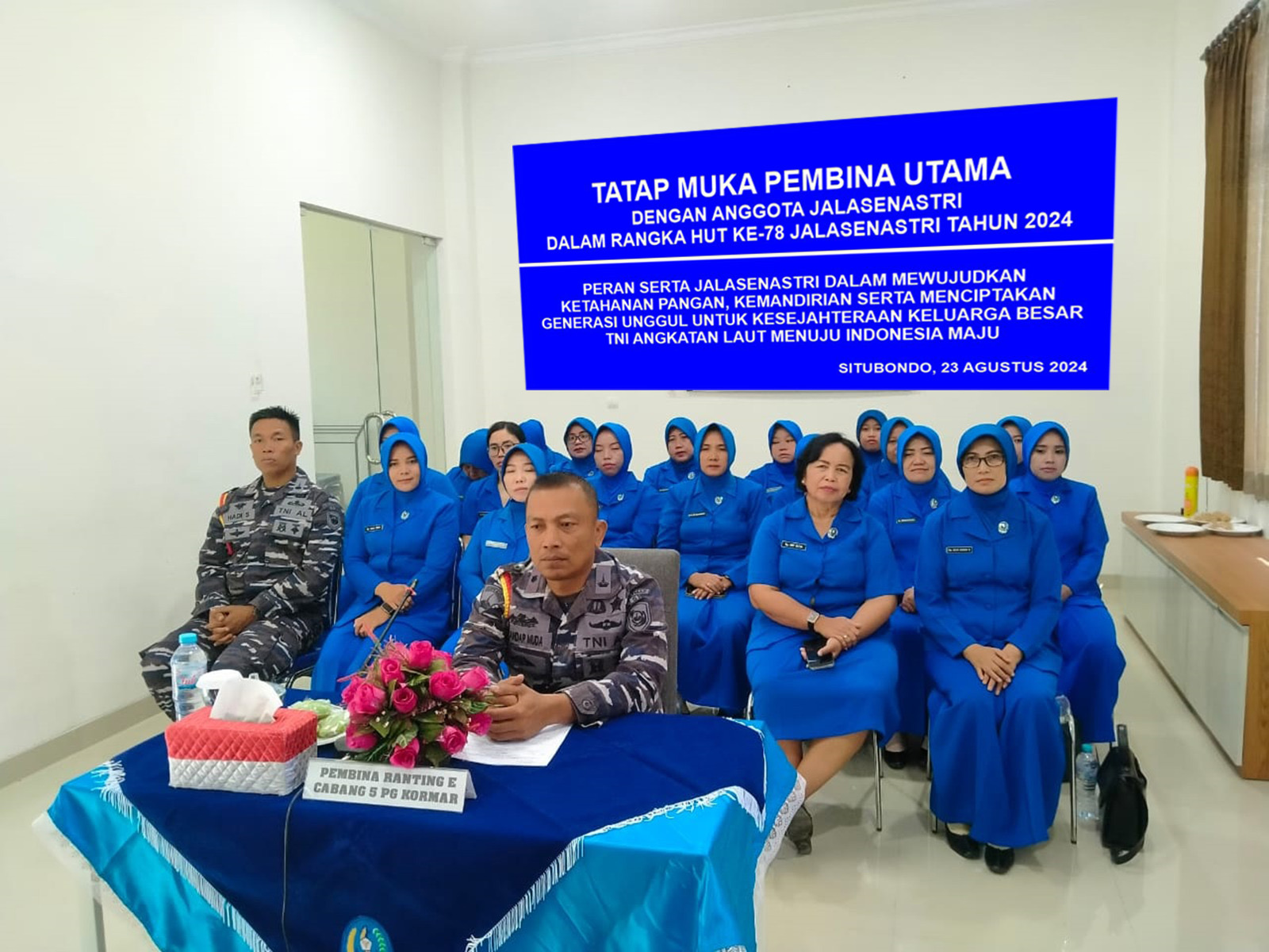 Kegiatan tatap muka Pembina Utama Jalasenastri tersebut dalam rangka Hari Ulang Tahun (HUT) ke 78 Jalasenastri yang mengangkat tema âPeran serta Jalasenastri dalam mewujudkan ketahanan pangan, kemandirian serta menciptakan generasi unggul untuk kesejahteraan keluarga besar TNI Angkatan Laut menuju Indonesia Maju.â