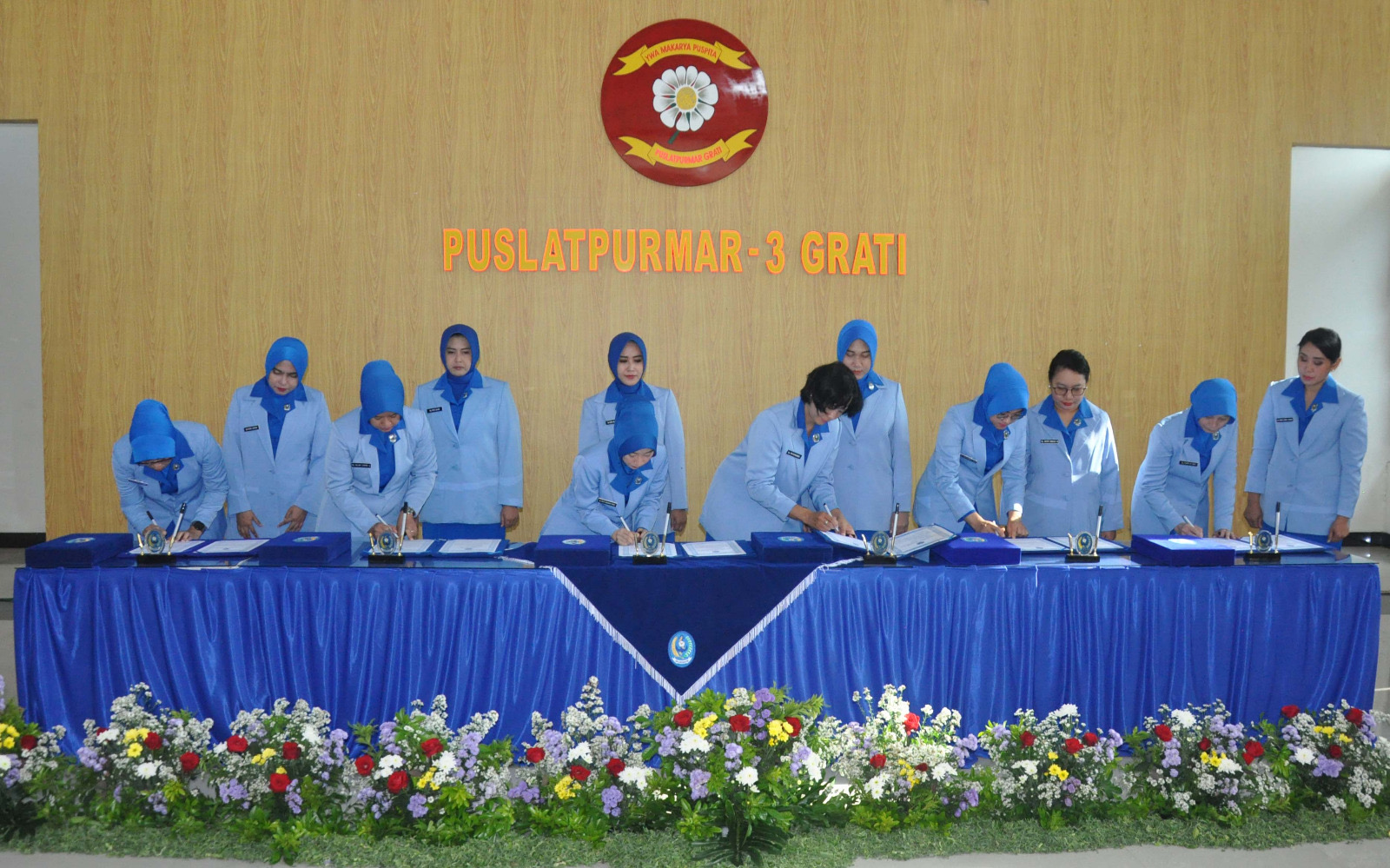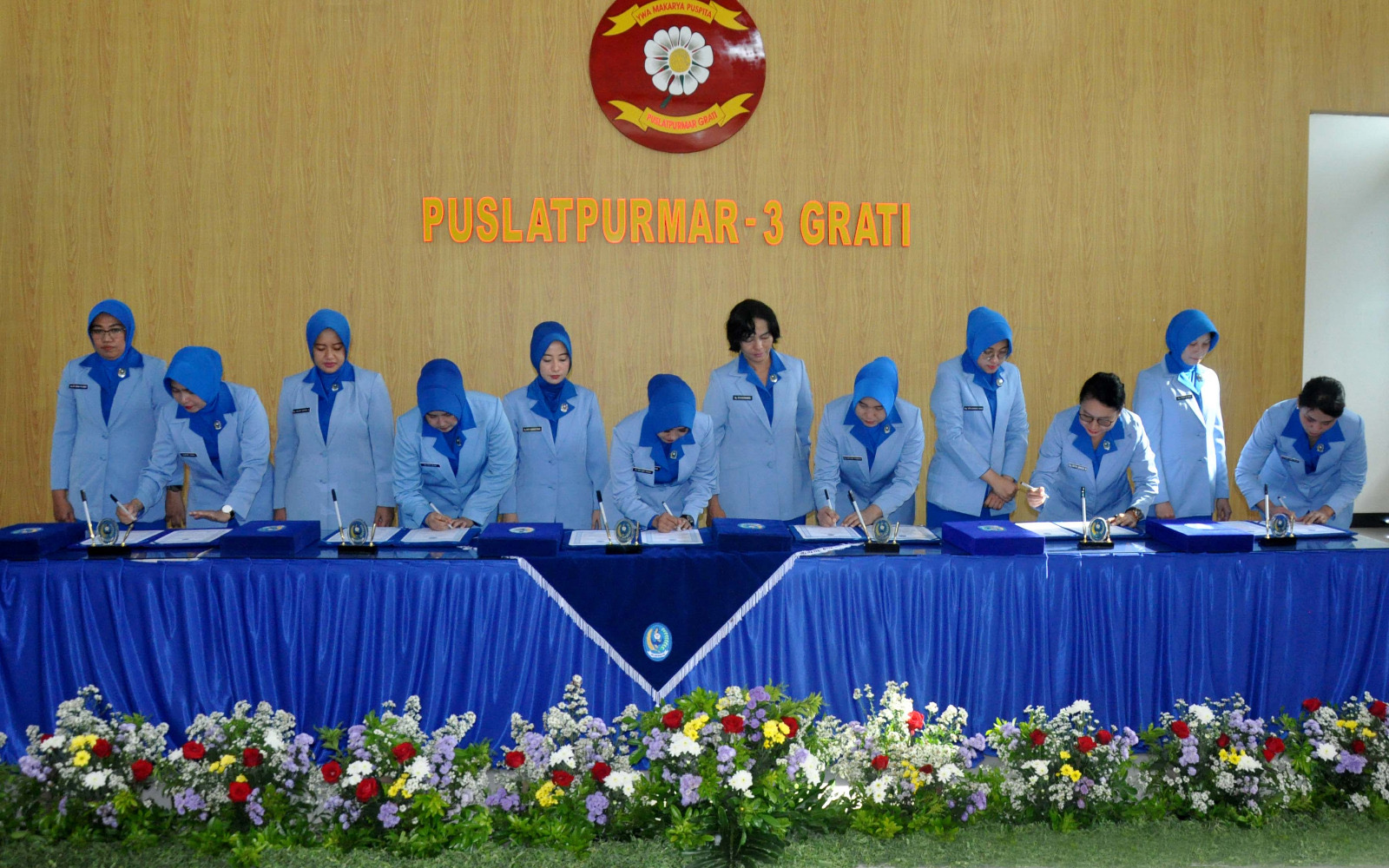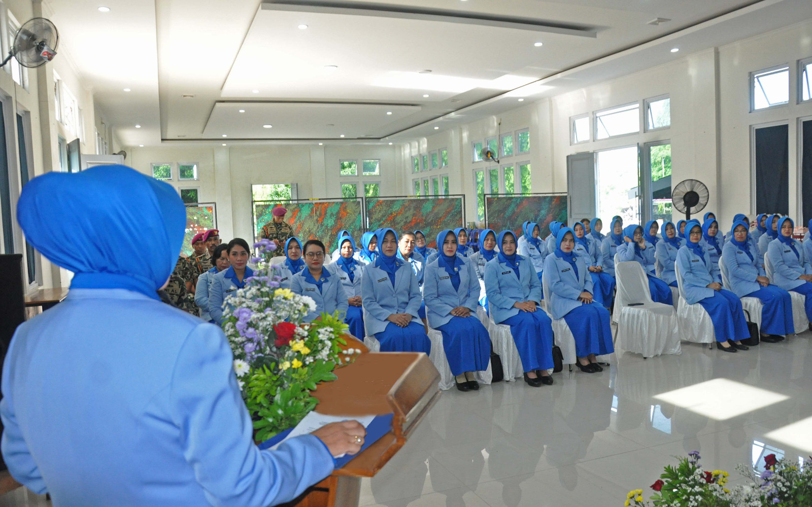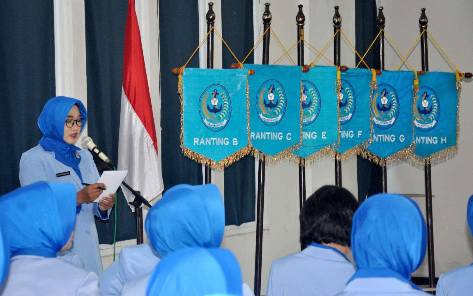 Dispen Kormar (Pasuruan). Ketua Cabang 5 Jalasenastri PG Kormar Ny. Evi Dede Harsana memimpin serah terima jabatan Ketua Ranting jajarannya di ruang Jalasenastri Puslatpurmar 3 Grati Pasuruan. Kamis (19/12/2024).