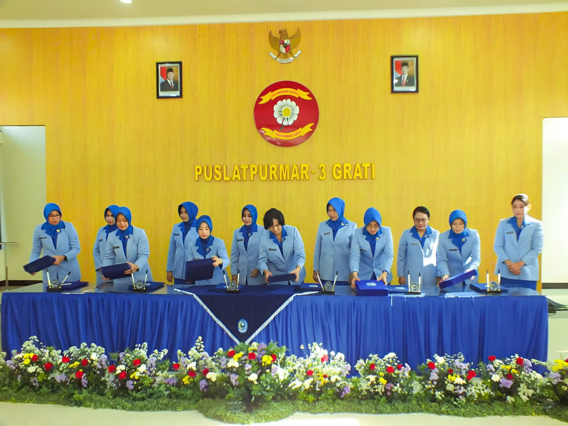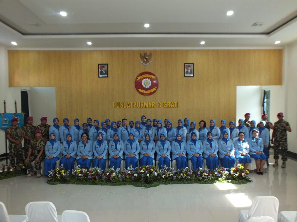 Dispen Kormar (Pasuruan). Ketua Cabang 5 PG Jalasenastri Kormar Ny. Dede Harsana dengan resmi memimpin serah terima jabatan Ketua Ranting F Cabang 5 PG Kormar, bertempat di ruang Bapra Puslatpurmar 3 Grati Pasuruan, Kamis (19/12/2024).