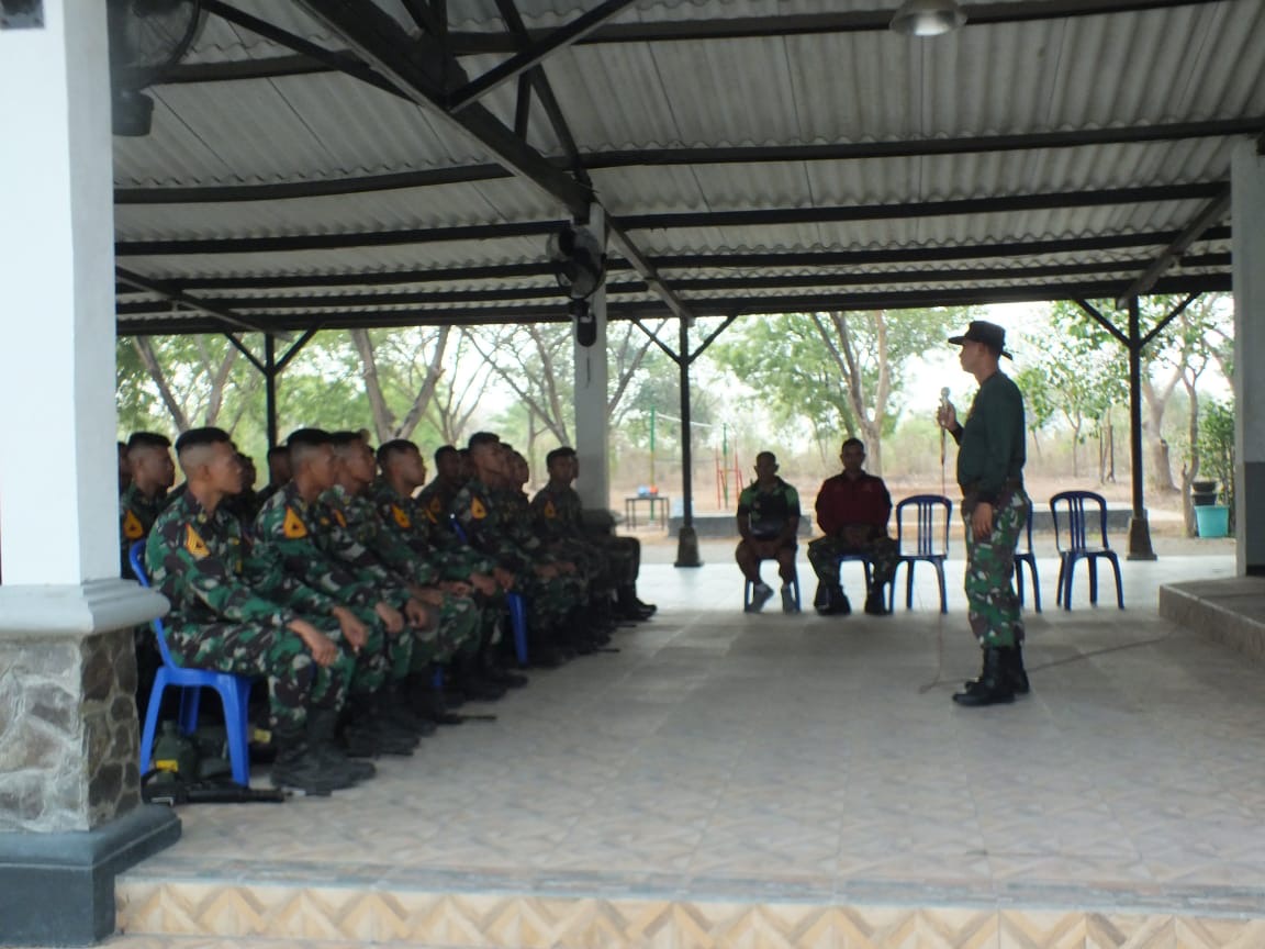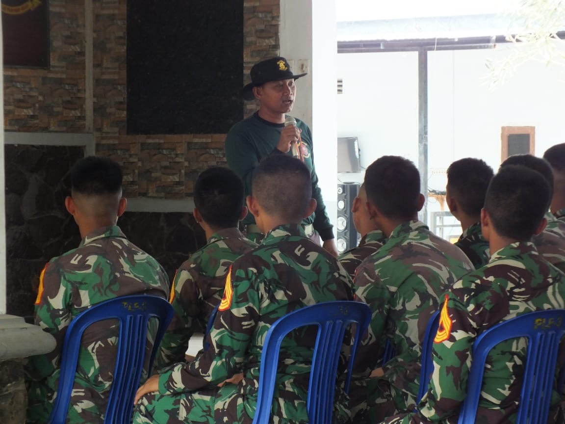 Dispen Kormar (Pasuruan). Komandan Pusat Latihan Pertempuran Marinir (Danpuslatpurmar) 3 Grati, LetKol Marinir Bernardus Yudi Ari W., M.Tr., Opsla., memberikan pengarahan dan pembekalan kepada Taruna Akademi Angkatan Laut (AAL) Tingkat IV Korps Marinir Angkatan 70 tahun 2024 yang telah menyelesaikan Latihan Praktik (Lattek) di indoor sport Kesatrian FF Tanjung Puslatpurmar 3 Grati. Rabu (25/09/2024).