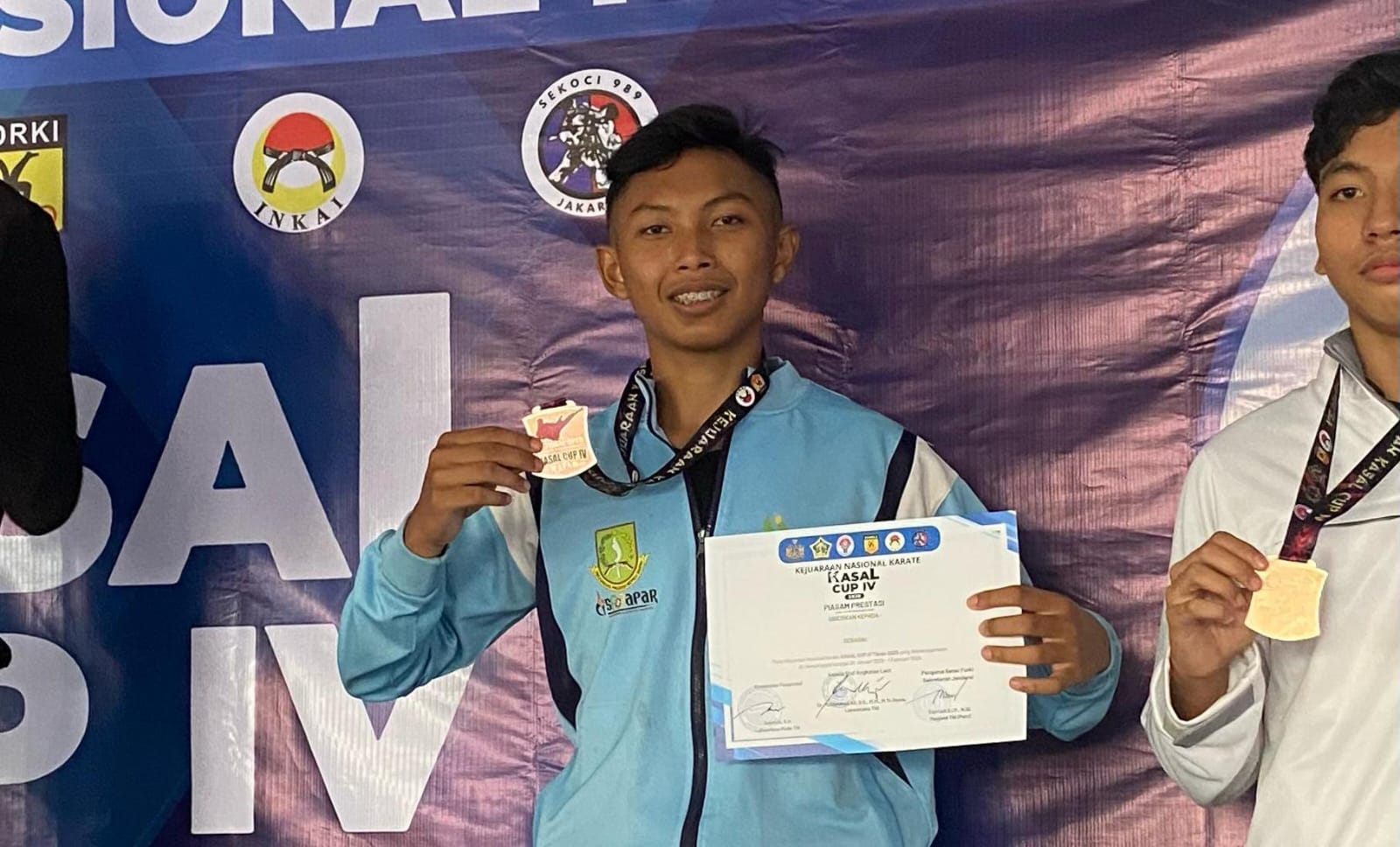 Dispen Kormar (Sukabumi) - Dalam rangka Event Kejurnas Karate Kasal Cup IV Tahun 2025 keluarga besar Puslatpurmar 6 Antralina, yaitu putra dari Lettu Marinir Komarudin, M. Dimas anugrah Ramdham meraih juara 3 junior komite-68 Kg putra dan putri dari Sertu Marinir Chusen, Nadhifa Chaerun Nisa meraih juara 3 Junior komite-59 Kg putri.