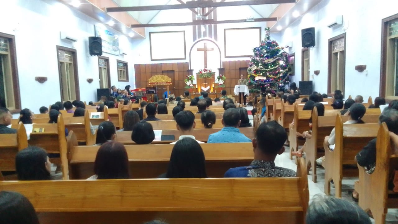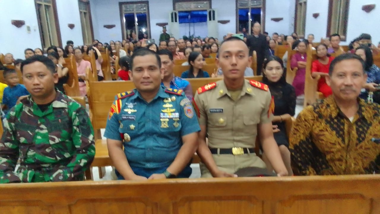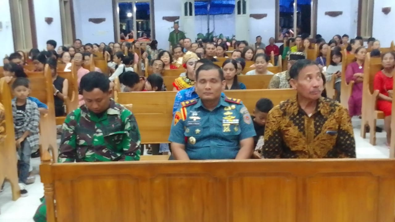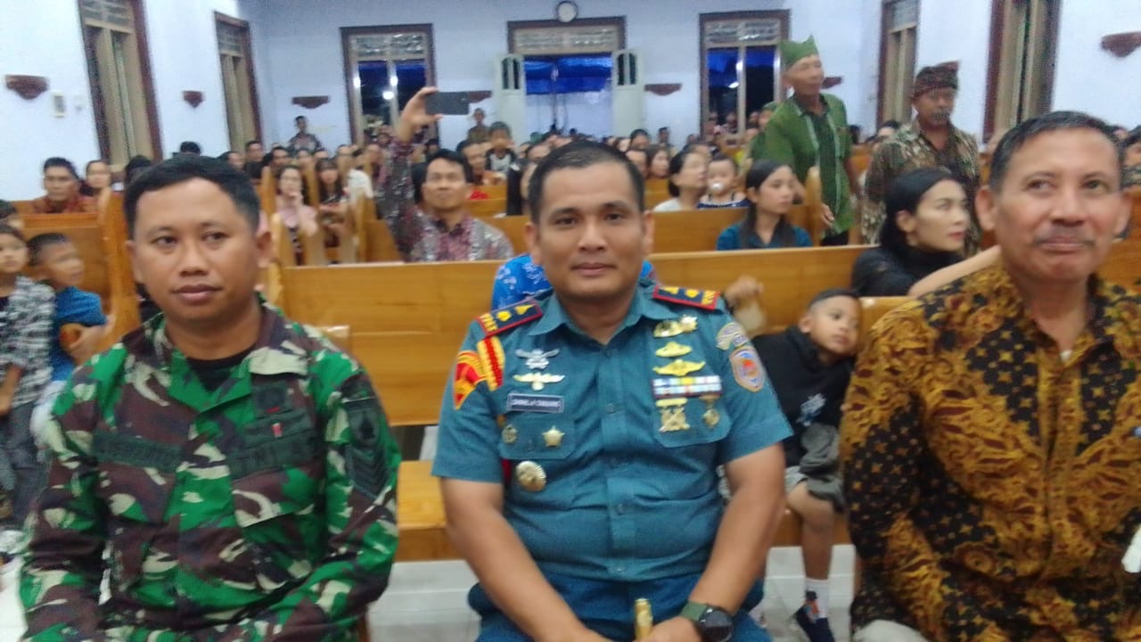 Dispen Kormar (Banyuwangi)- Komandan Pusat Latihan Pertempuran Marinir (Danpuslatpurmar) 7 Lampon menghadiri Acara Perayaan Malam Natal di Gereja Kristen Jawi Wetan(GKJW) Jln.Suprapto No.22-26 Pesanggaran Banyuwangi bersama Forpimka Plus Kec.Pesanggaran, Selasa 24/12/ 2024.