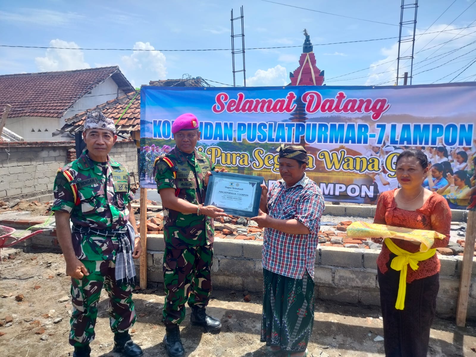 Dalam Kegiatan ini, Danpuslatpurmar 7 Lampon Letkol Mar M. Sidik R M. Tr Opsla yang di wakili Dandentih Intel Anti Teror Mayor Marinir Wironoto S.H., M.H. di sambut dengan rasa gembira oleh warga Pura Segara Wana Giri Lampon, karena Puslatpur telah menunjukkan kepedulian dan perhatian terhadap tempat Ibadah di daerah binaanya.