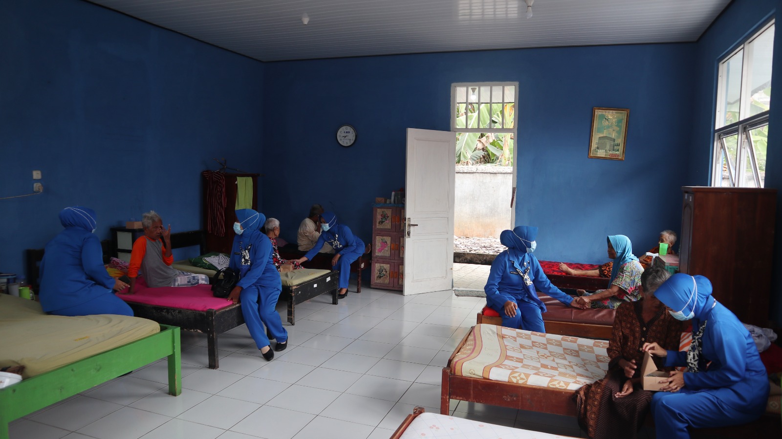 Kunjungan pertama dilakukan ke Panti Jompo Tresna Werdha, di mana Ketua Ranting I beserta pengurus memberikan bantuan berupa kebutuhan pokok dan alat kesehatan untuk para lansia yang tinggal di sana. Selain memberikan bantuan, para pengurus juga berinteraksi langsung dengan para penghuni panti, memberikan semangat serta menghibur mereka dengan berbagai kegiatan yang sudah disiapkan.