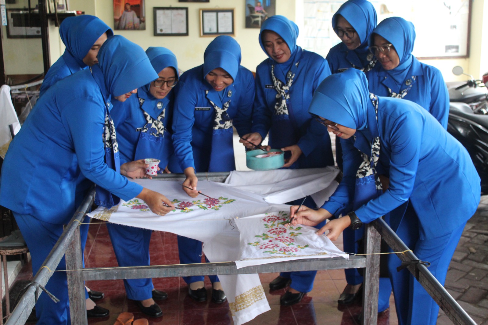 Dispen Kormar (Surabaya) - Ketua Jalasenastri Ranting B Cabang 5 PG Kormar Ny.Dey Irman Ali Polanunu beserta pengurus melaksanakan Kunjungan Kerja (Kunker) ke Pembuatan Batik Blimbing Malang dan Pabrik Pocari bertempat di Jl.Raya Pasuruan dan Jl.Candi Jogo Blimbing, Malang Jawa Timur, Selasa (21/05/2024).