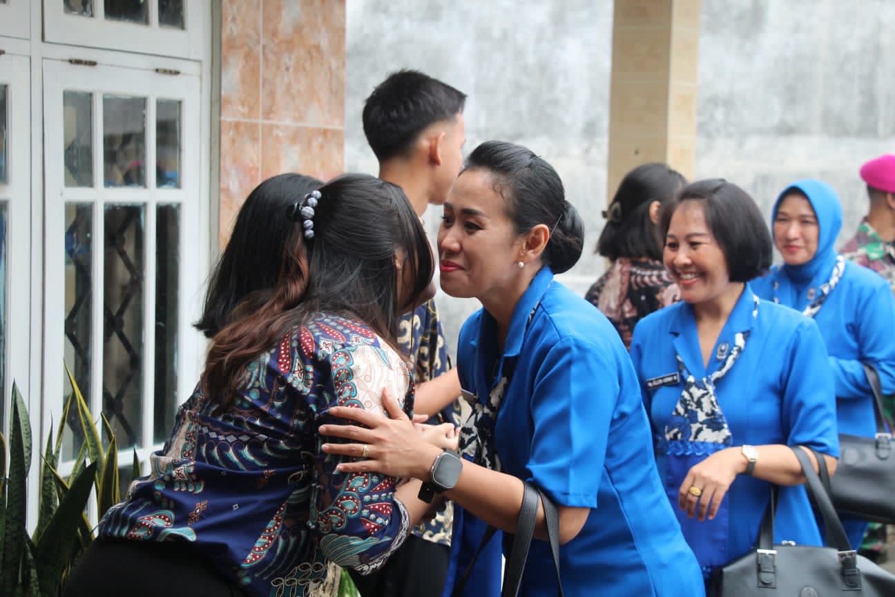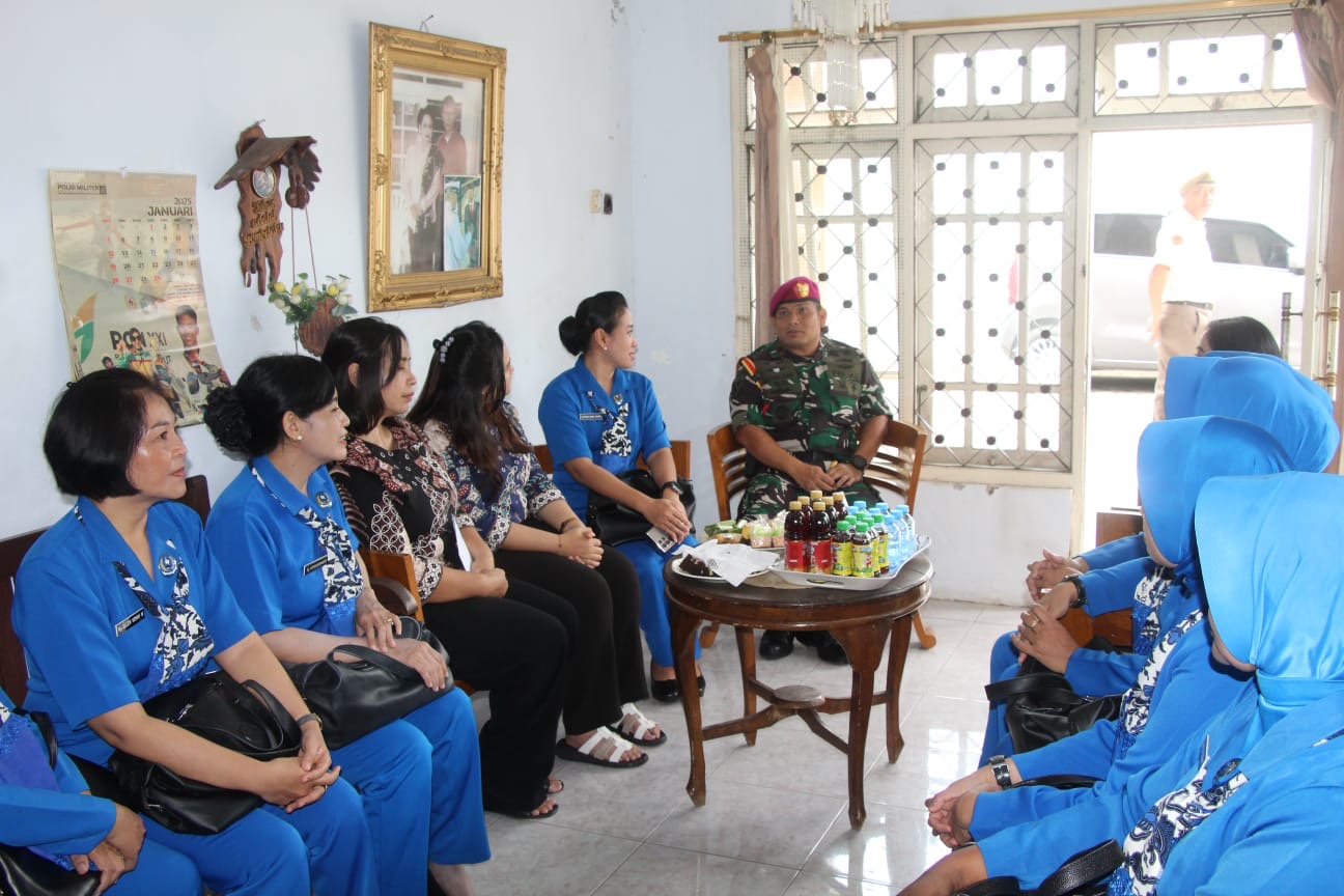 Dispen Kormar (Banyuwangi)-Komandan Puslatpurmar 7 Lampon Mayor Marinir Zainal Arifin Tanjung M.Tr.Opsla didampingi Ketua Ranting H Cabang 5 PG Kormar Ny.Friska Zainal Arifin Tanjung mengunjungi keluarga Purnawirawan Alm.Peltu KKO (Purn) Julius Evert Kandow penemu daerah latihan Marinir Lampon dan Warakawuri Istri Alm. Serka Mar Dwi Bramantyo di Genteng Banyuwangi, Kamis (16/01/2025).