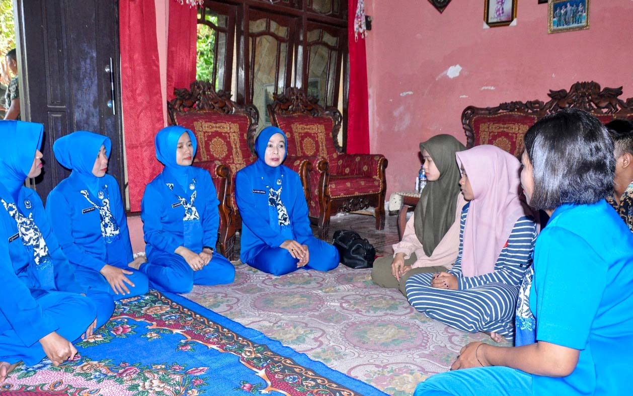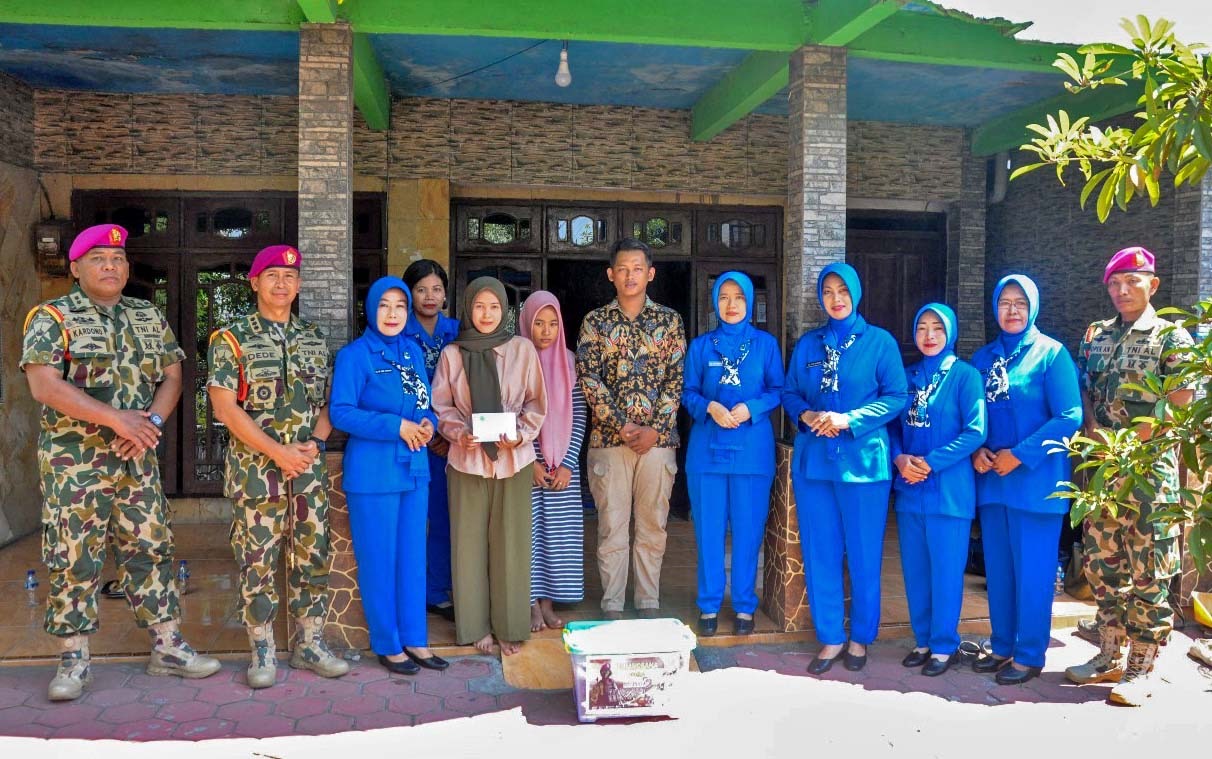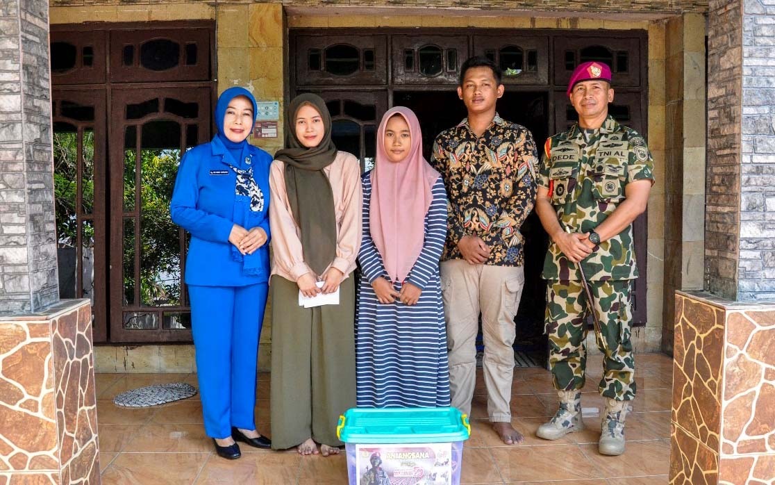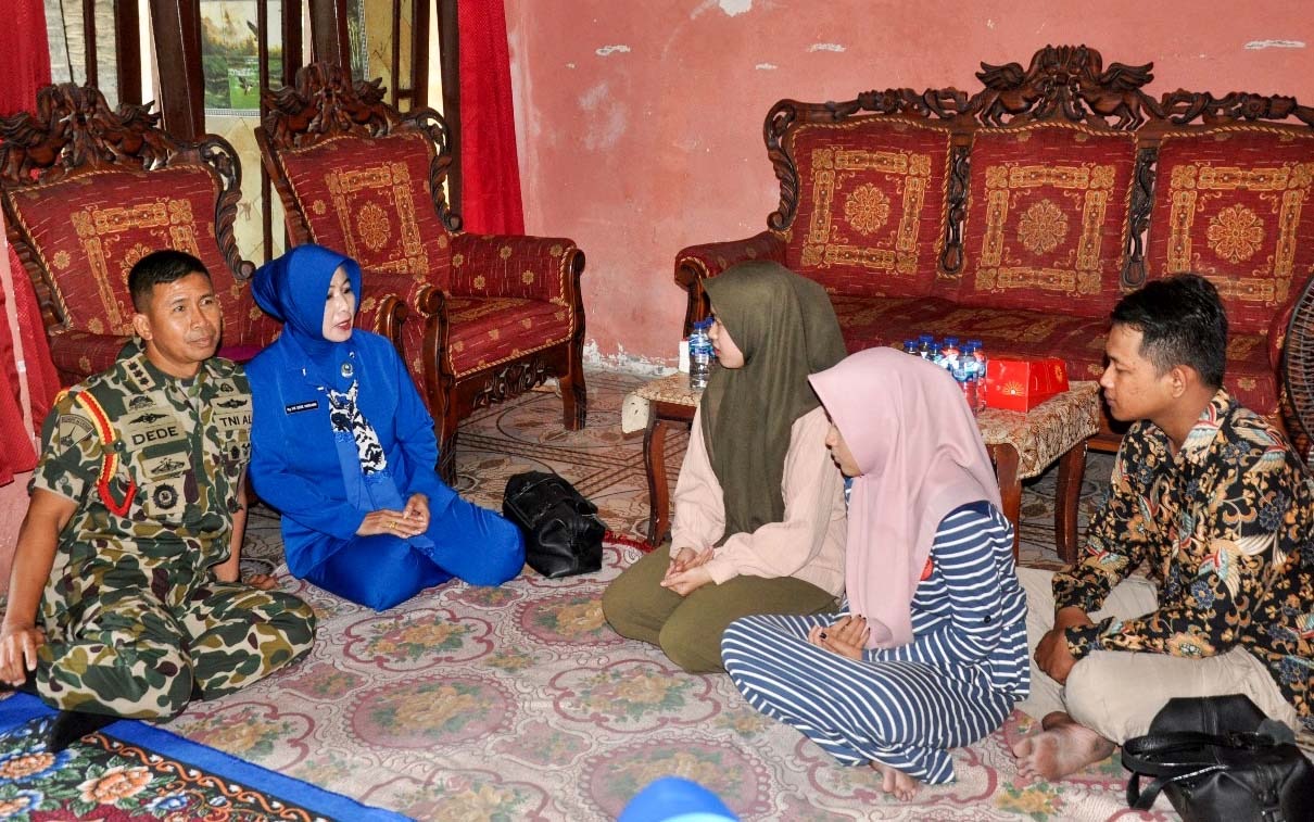 Dispen Kormar (Pasuruan). Komandan Komando Latih Korps Marinir Kolonel Marinir Dede Harsana S.A.P., M.Han didampingi Ketua Cabang 5 PG Jalasenastri Kormar Ny. Evi Dede Harsana laksanakan kunjungan sosial ke kediaman putra-putri Almarhum Sertu Mar (Purn) Sutarno di Ds. Kebakalan RT 04/01 Porong , Sidoarjo, Jumat (08/11/2024).