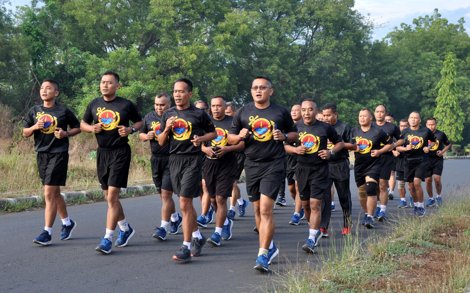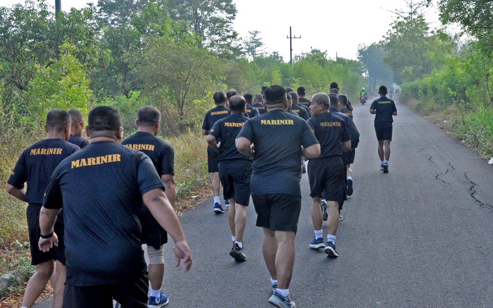 Dispen Kormar (Pasuruan). Perwira Markas Komando Latih Korps Marinir (Kolatmar) laksanakan olah raga lari bersama di rahlat Grati Pasuruan, Kamis (03/07/2024).