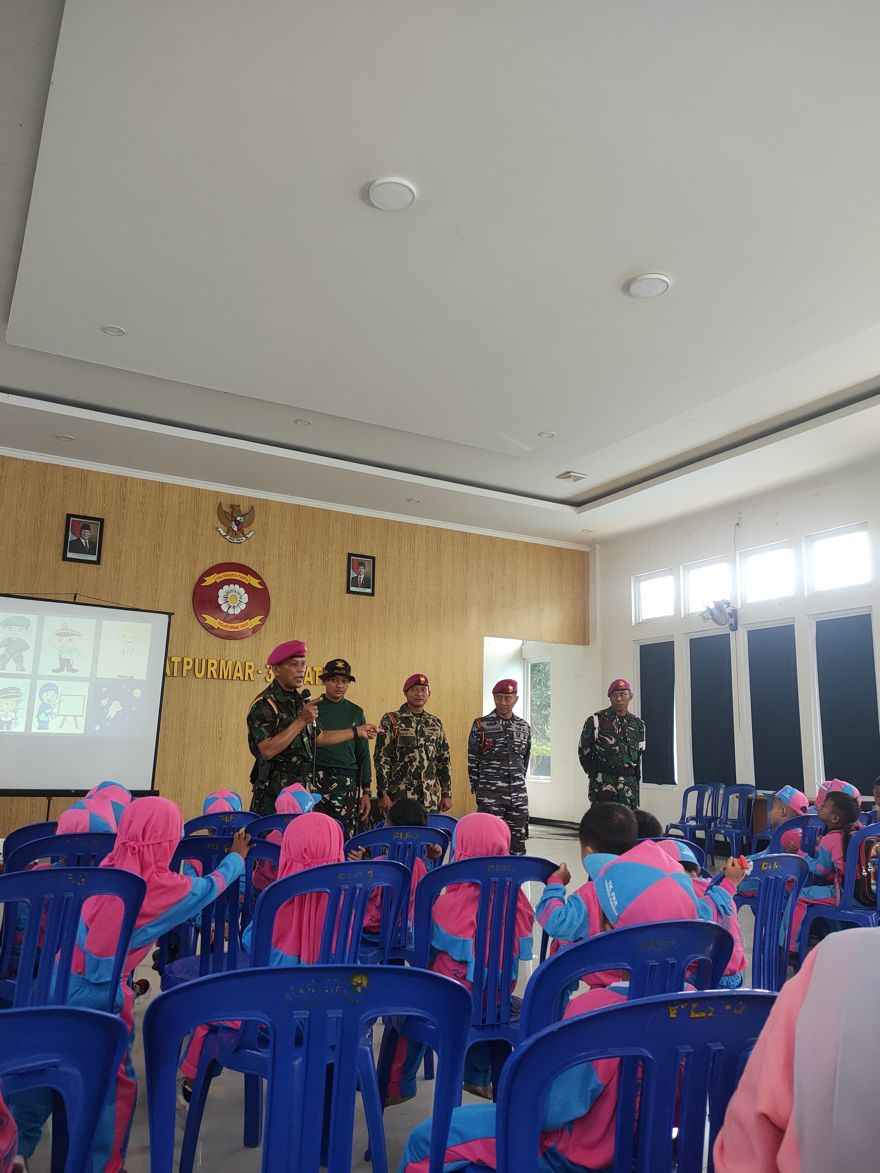 Acara dimulai dengan menyanyikan lagu kebangsaan Indonesia Raya secara khidmat sebagai bentuk penghormatan terhadap negara dan menumbuhkan rasa nasionalisme pada anak-anak. Setelah itu, Letda Mar M. Marsudi memberikan penjelasan mengenai pentingnya kedisiplinan dalam kehidupan sehari-hari, menanamkan jiwa patriotisme, serta mengenalkan seragam TNI AL Korps Marinir.