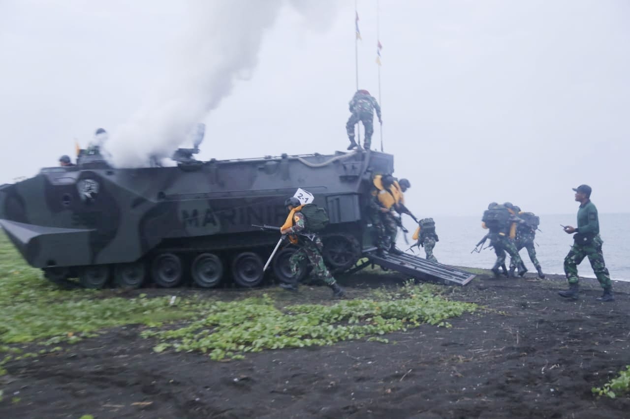 Dispen Kormar (Situbondo). Dalam rangka meningkatkan kemampuan profesionalisme prajurit Marinir Pusat Latihan pasukan pendarat (Puslatpasrat) dan Kodiklatal melaksanakan latihan praktik Operasi Amfibi (OA) kepada Taruna AAL tingkat IV angkatan 70 yang bertempat di pantai Banongan Situbondo dan sekitarnya, kamis (23/01/2025).
