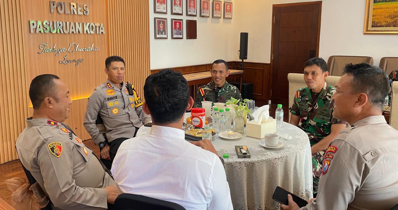 Setelah itu, Danpuslatsus melanjutkan agenda ke Polresta Pasuruan Kota. Kehadiran beliau diterima langsung oleh Kapolresta Pasuruan, AKBP Davis Busin Siswara, S.I.K., M.I.Kom., didampingi Wakapolresta, Kabag SDM, dan Kasatres Narkoba. Pertemuan berlangsung dalam suasana resmi yang tetap mengedepankan semangat persaudaraan antarinstitusi.