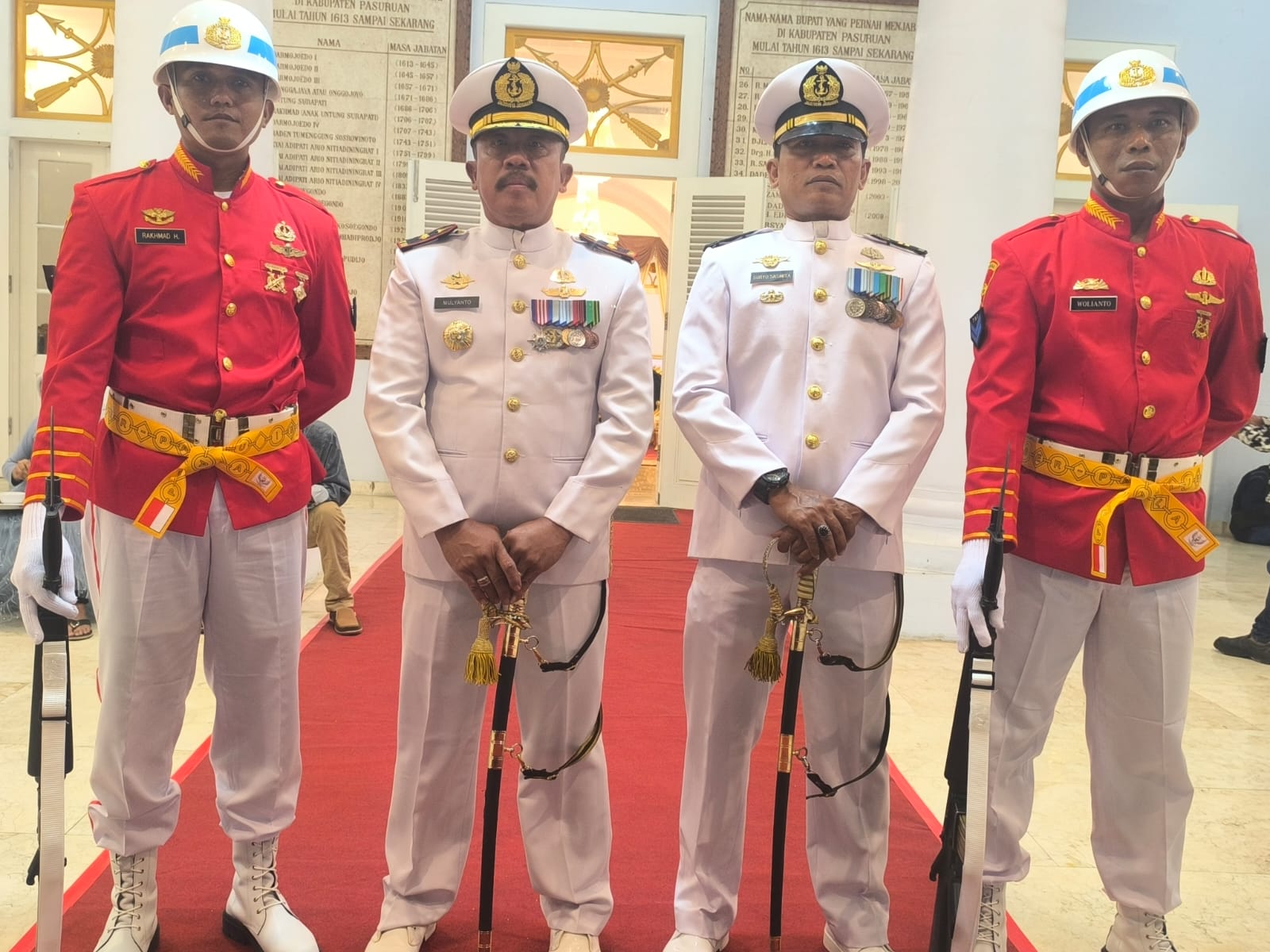 Dispen Kormar (Pasuruan). Perwira Pusat Latihan Pertempuran Marinir (Puslatpurmar) 3 Grati yang diwakili Lettu Marinir Suryo Sasmita turut menghadiri acara pengukuhan Pasukan Pengibar Bendera (Paskibra) Kabupaten Pasuruan yang digelar di Pendopo Nyawiji Ngesti Wenganing Gusti Kabupaten Pasuruan Kamis (15/08/2024).