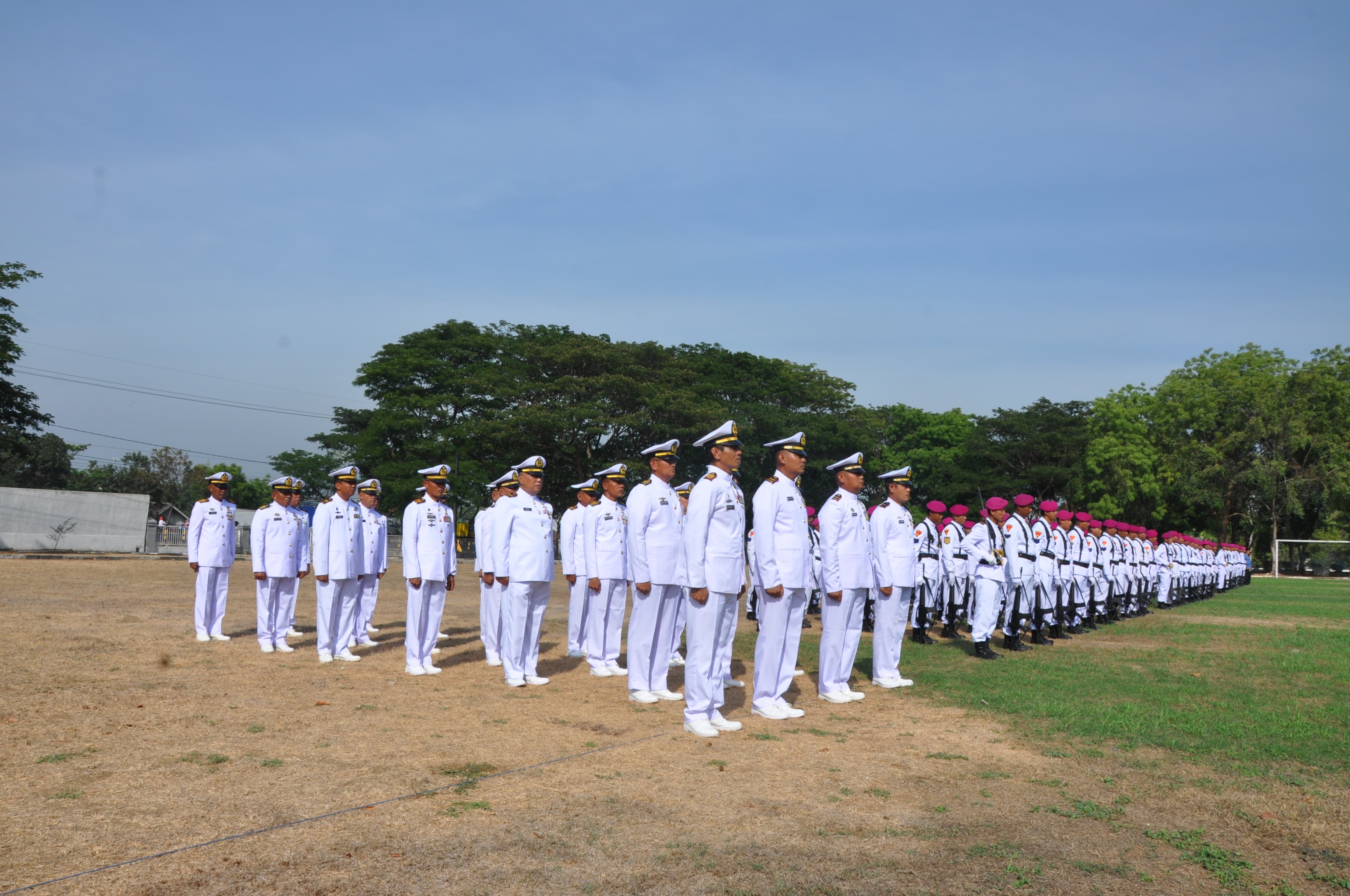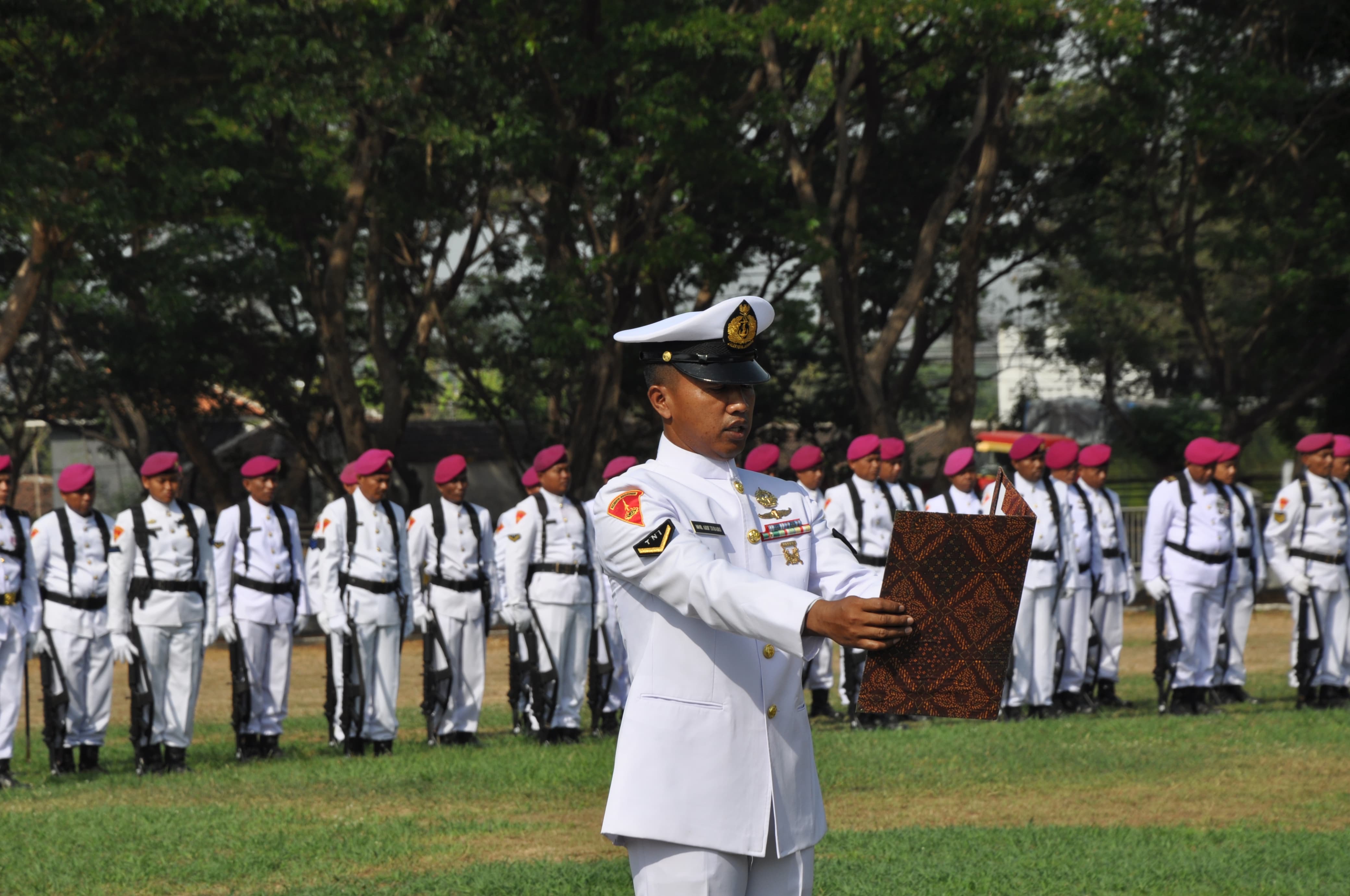 Dispen Kormar (Pasuruan) - Prajurit Komando Latih Korps Marinir melaksanakan upacara dalam rangka memperingati Hari Kesaktian Pancasila, bertempat di lapangan Upacara Mako Kolatmar, Sumberanyar, Nguling, Pasuruan, Selasa (01/10/2024).